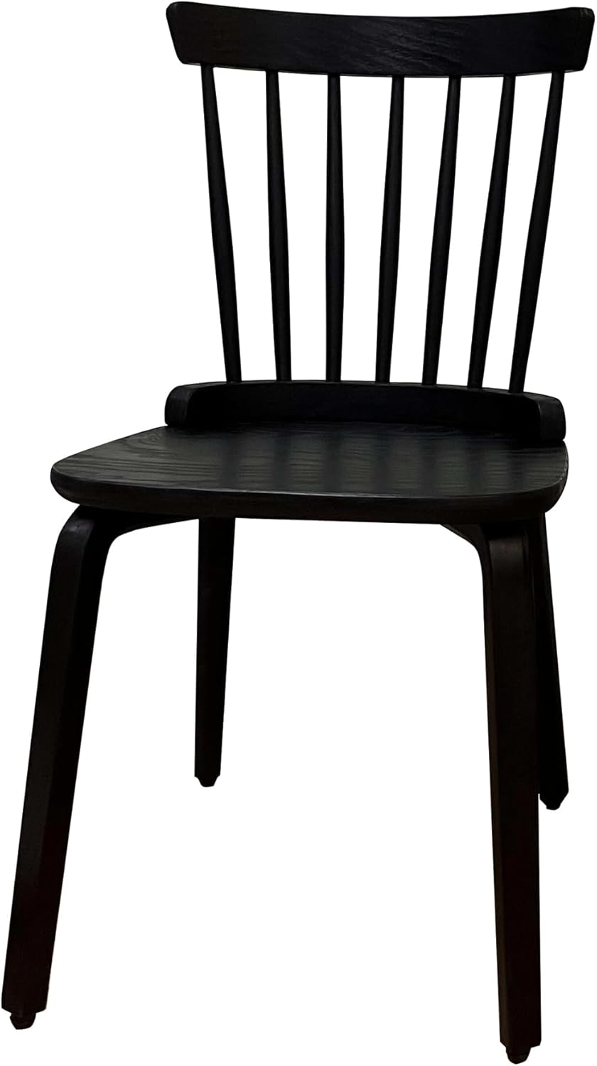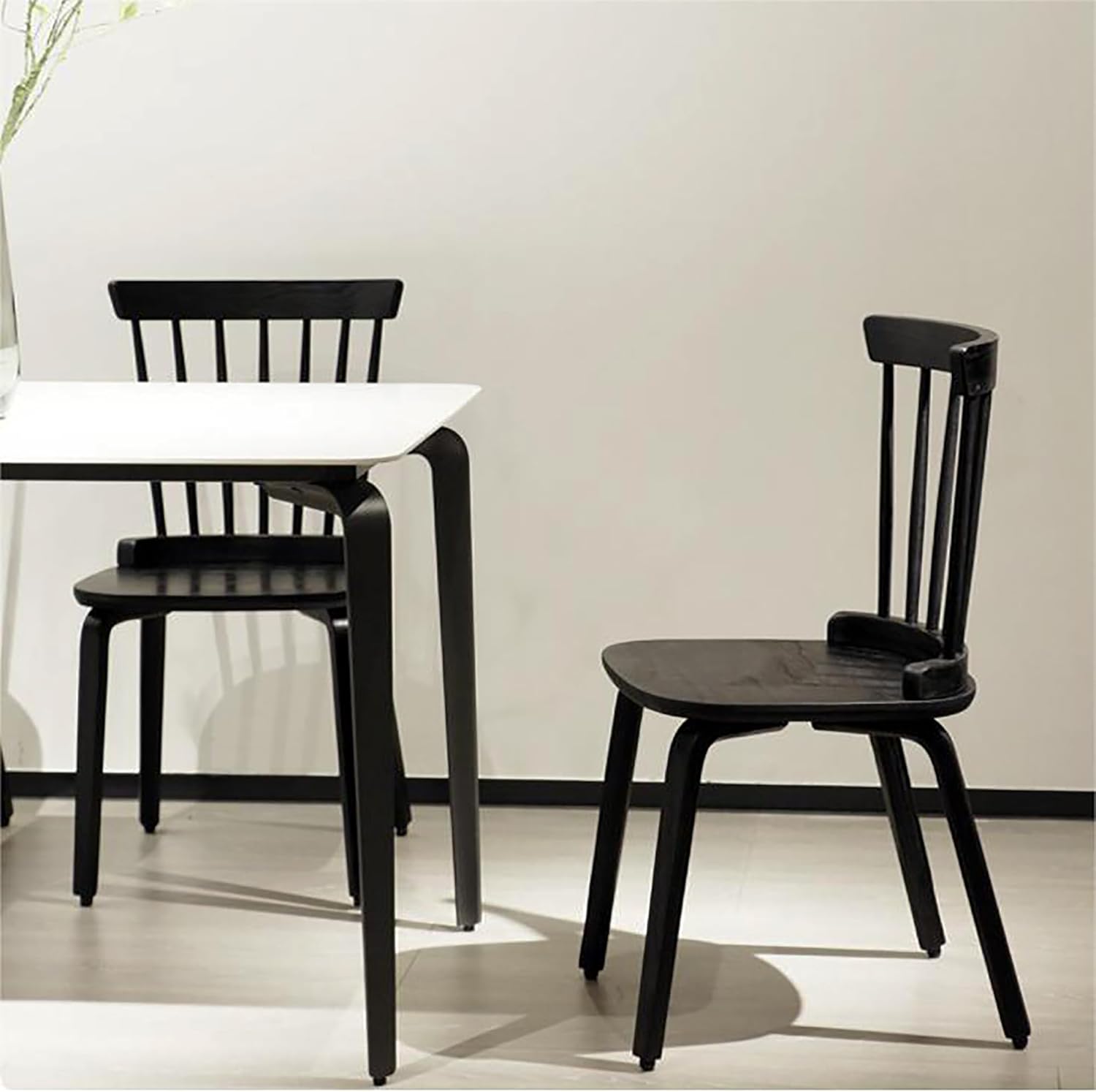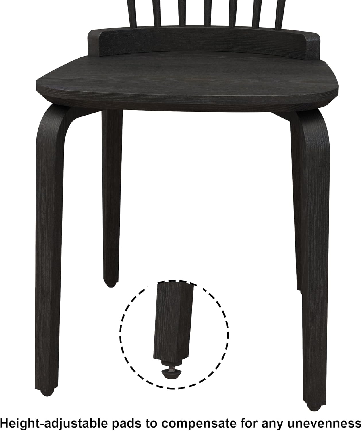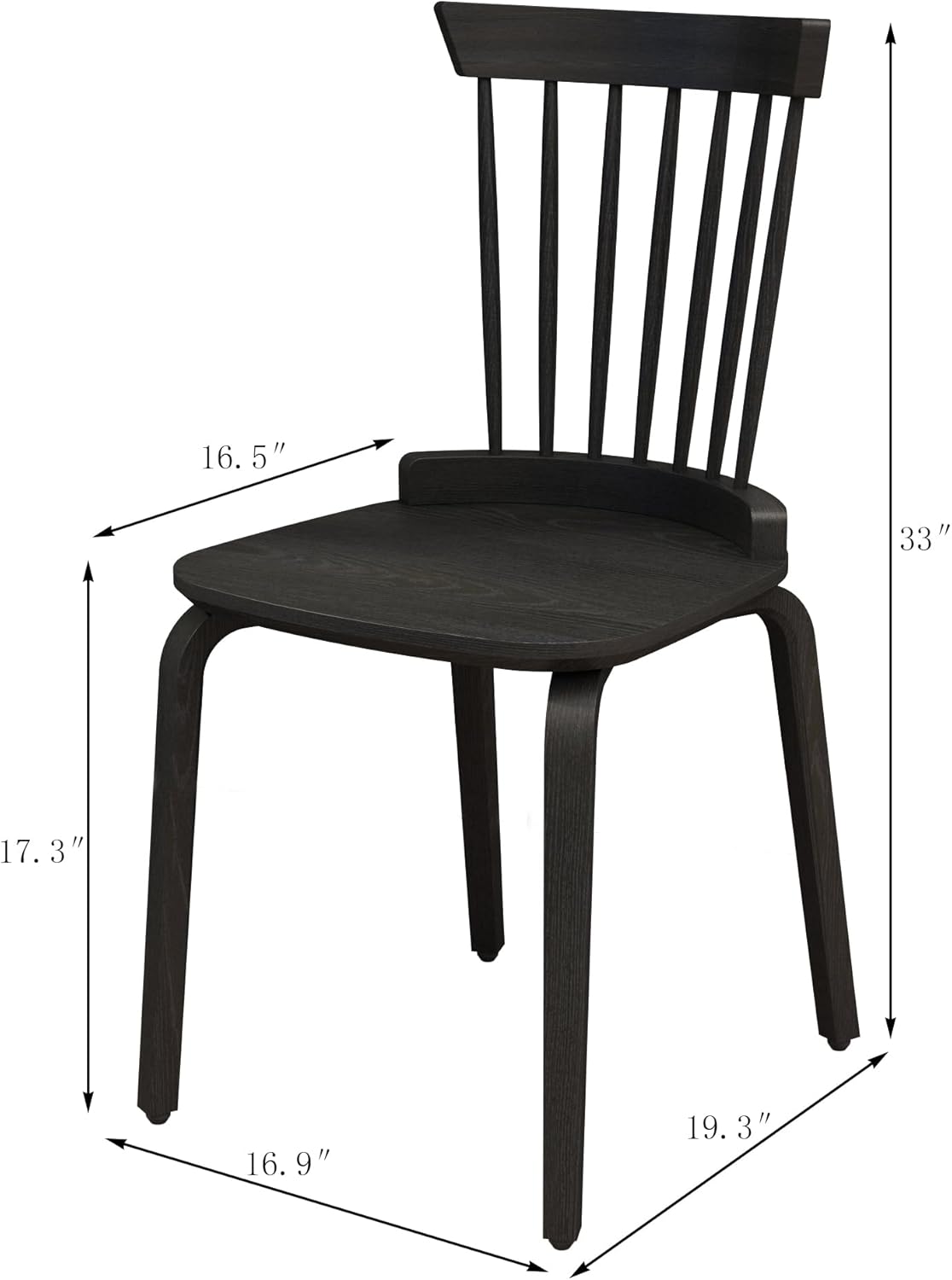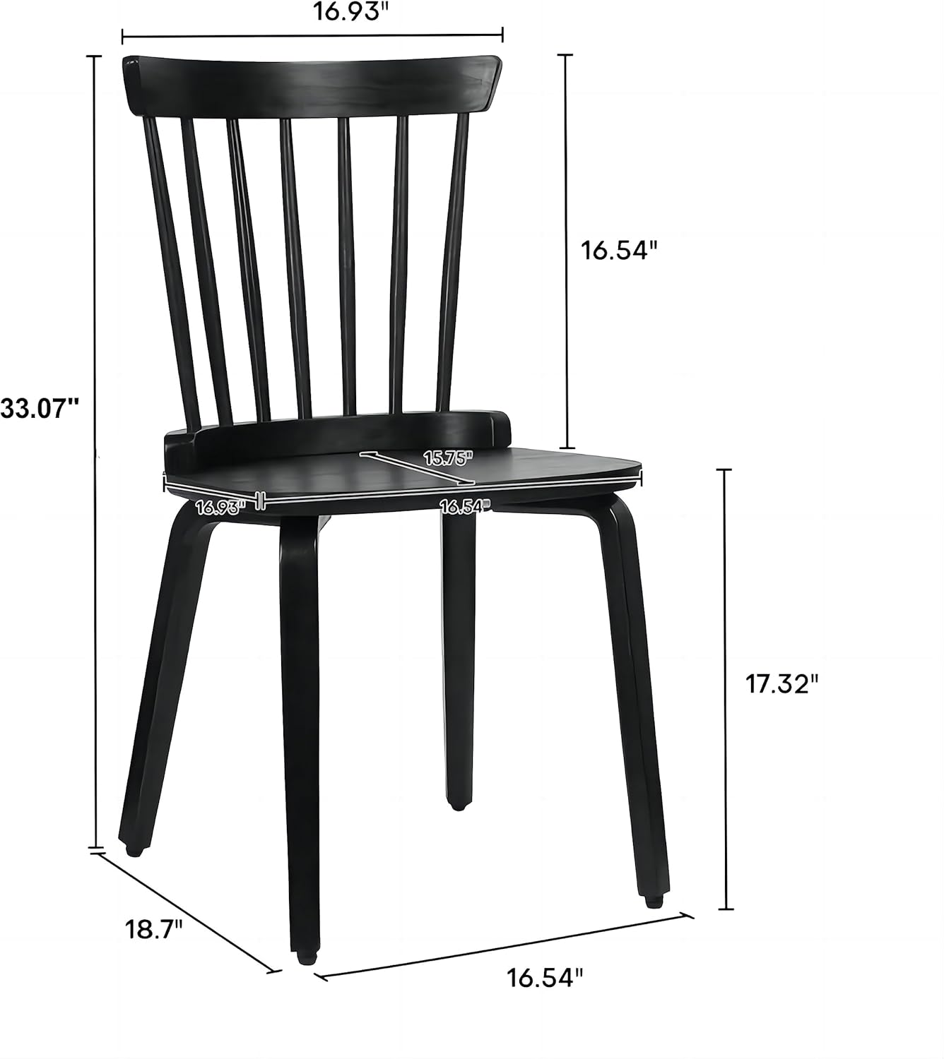 VOXIV Set of 2 Solid Wood Slat Back Windsor Chair, Dining Chairs with Spindle Back Solid Wood for Dining Room Black