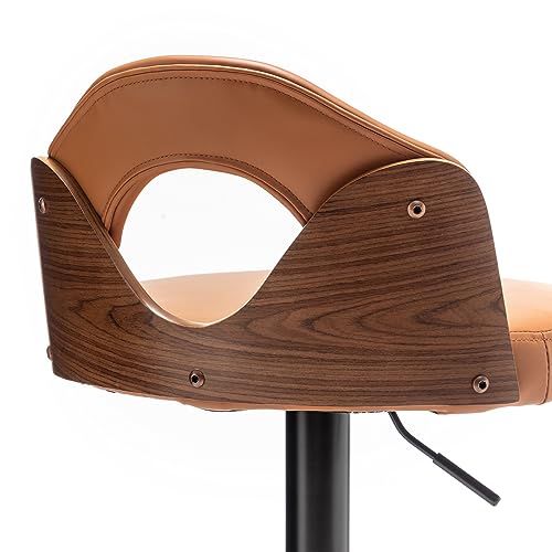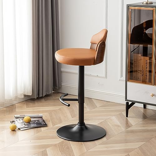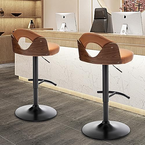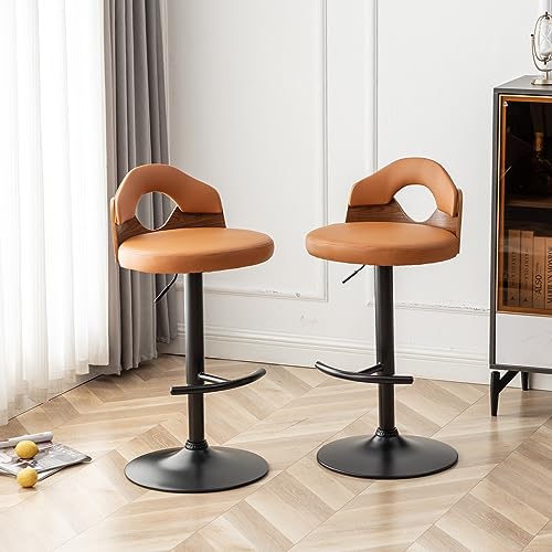 Swivel Bar Stools Set of 2,Mid Century Modern Faux Leather Barstools,Adjustable Counter Height Bar Chairs with Low Back for Kitchen Island Counter Stool(Black)