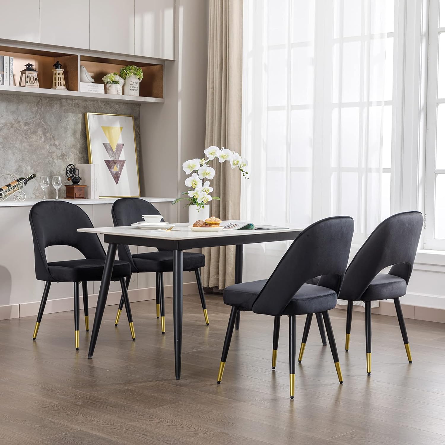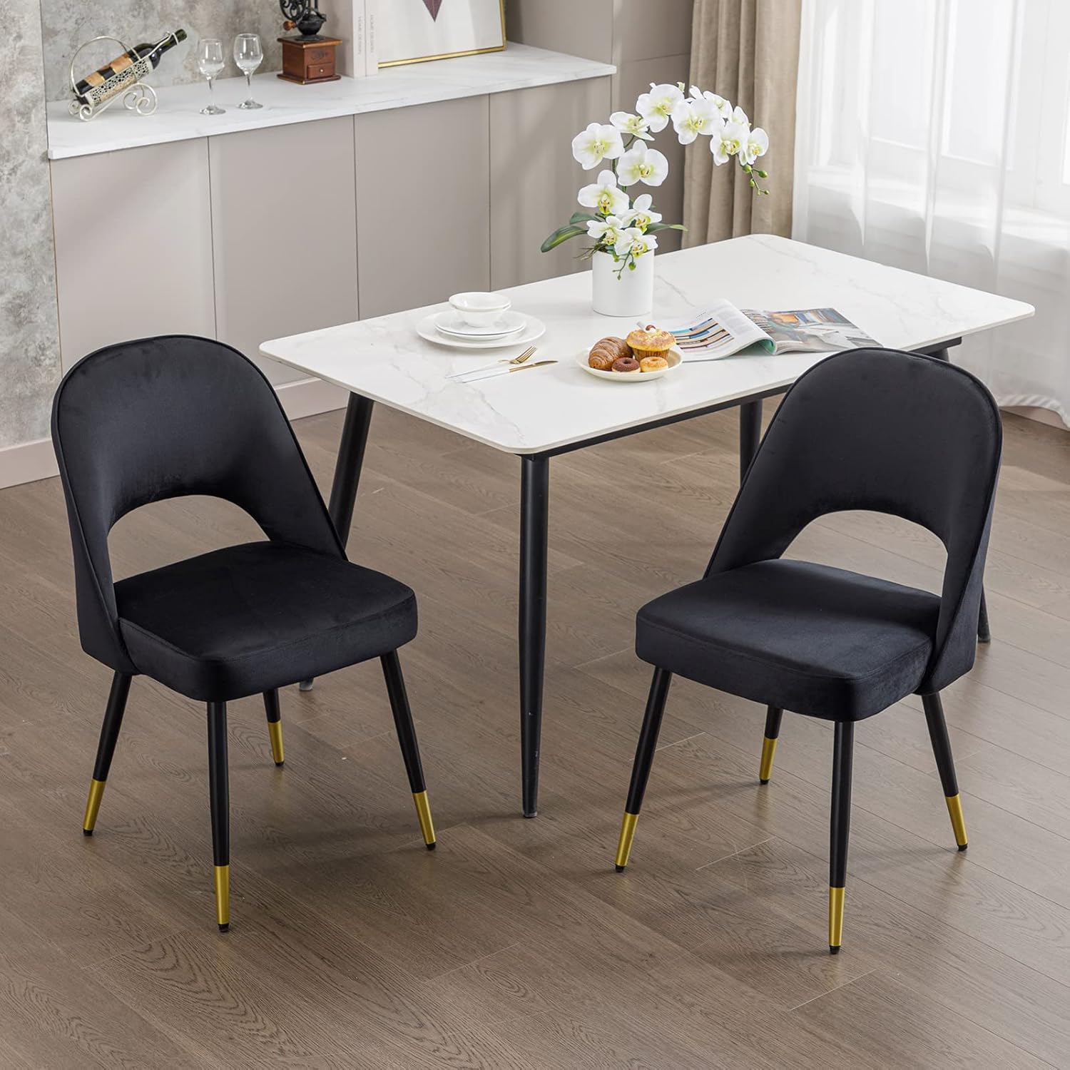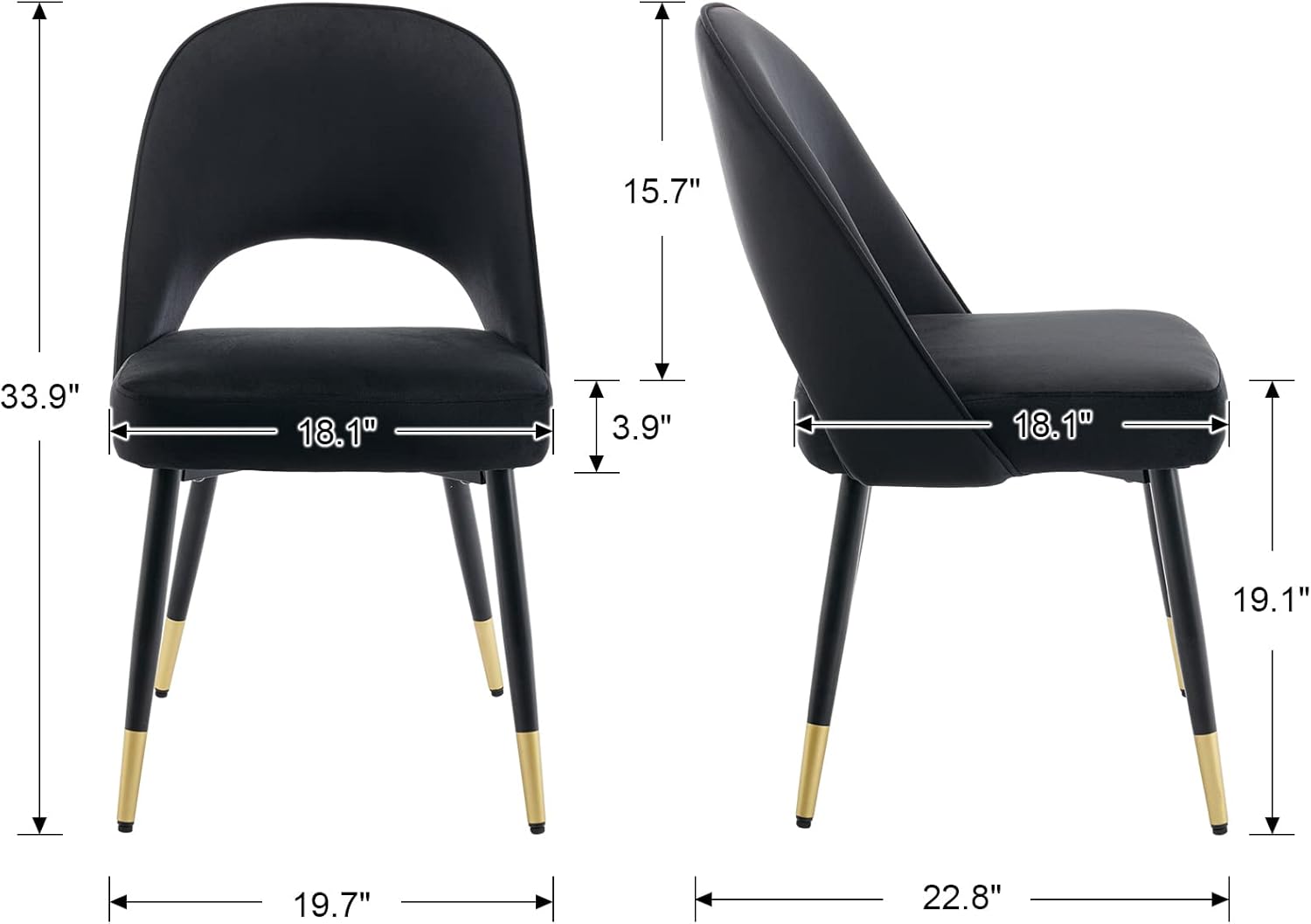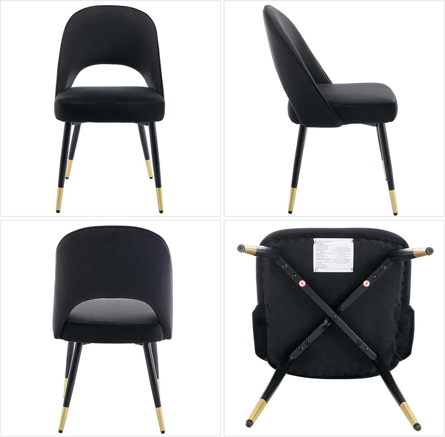 DUOMAY Modern Dining Chair Set of 8 with Open Back, Velvet Upholstered Armless Chair with Metal Frame Side Chair for Kitchen Dining Room Living Room, Black