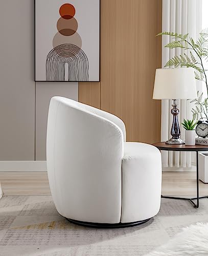 INMOZATA Swivel Chair Upholstered Round Barrel Chair with Backrest Modern Accent Arm Chair 360° Swivel Bucket Club Chair Teddy Comfy Reading Chair for Living Room Bedroom Apartment,Black