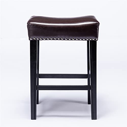 Bar Stools Set of 2, 26" Faux Leather Upholstered Counter Height Barstools with Nailhead Trims and Solid Wood Legs, Farmhouse Backless Dining Chairs Island Chairs with Footrest, Saddle Stool, Black