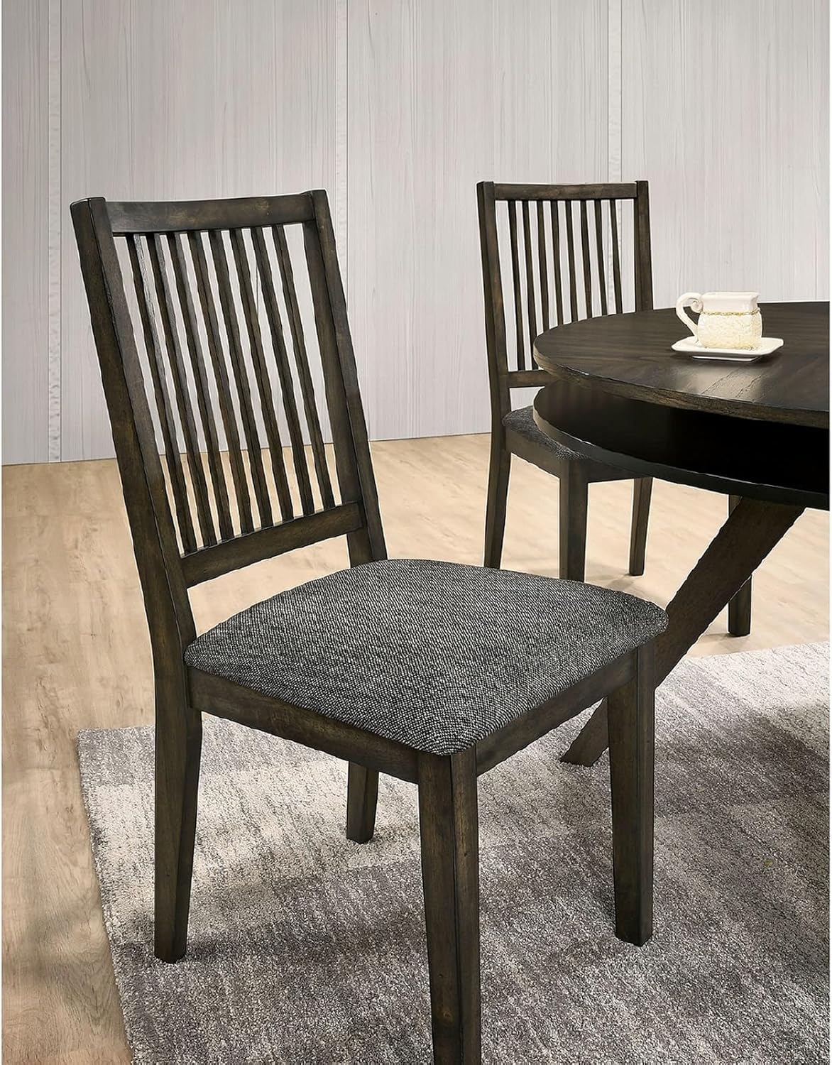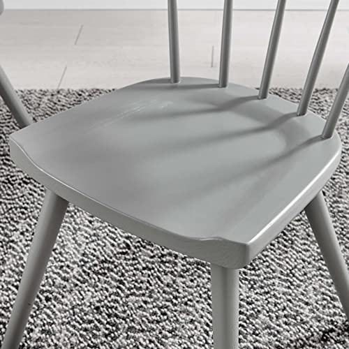 Gray Linen Like Fabric Set of 2 Chairs Transitional Style Solid Wood Spindle Back Chairs Padded Fabric Cushion Seat