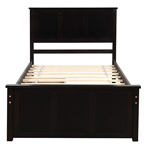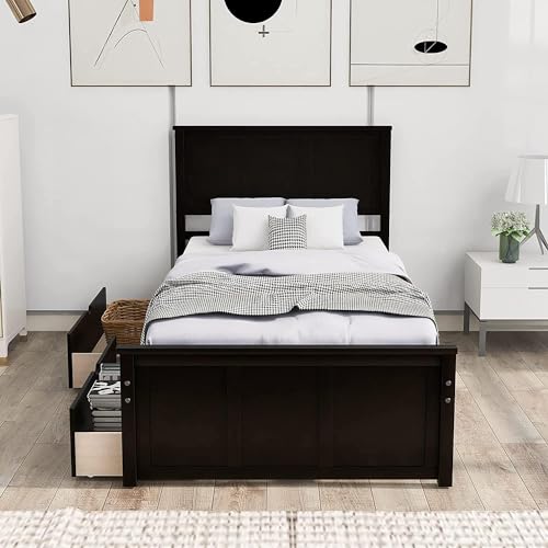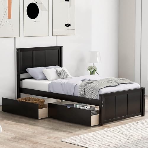 Twin Platform Bed with Drawers/Wooden Storage Bed with Headboard/Wood Slat Support/No Box Spring Needed/Easy Assembly, Gray
