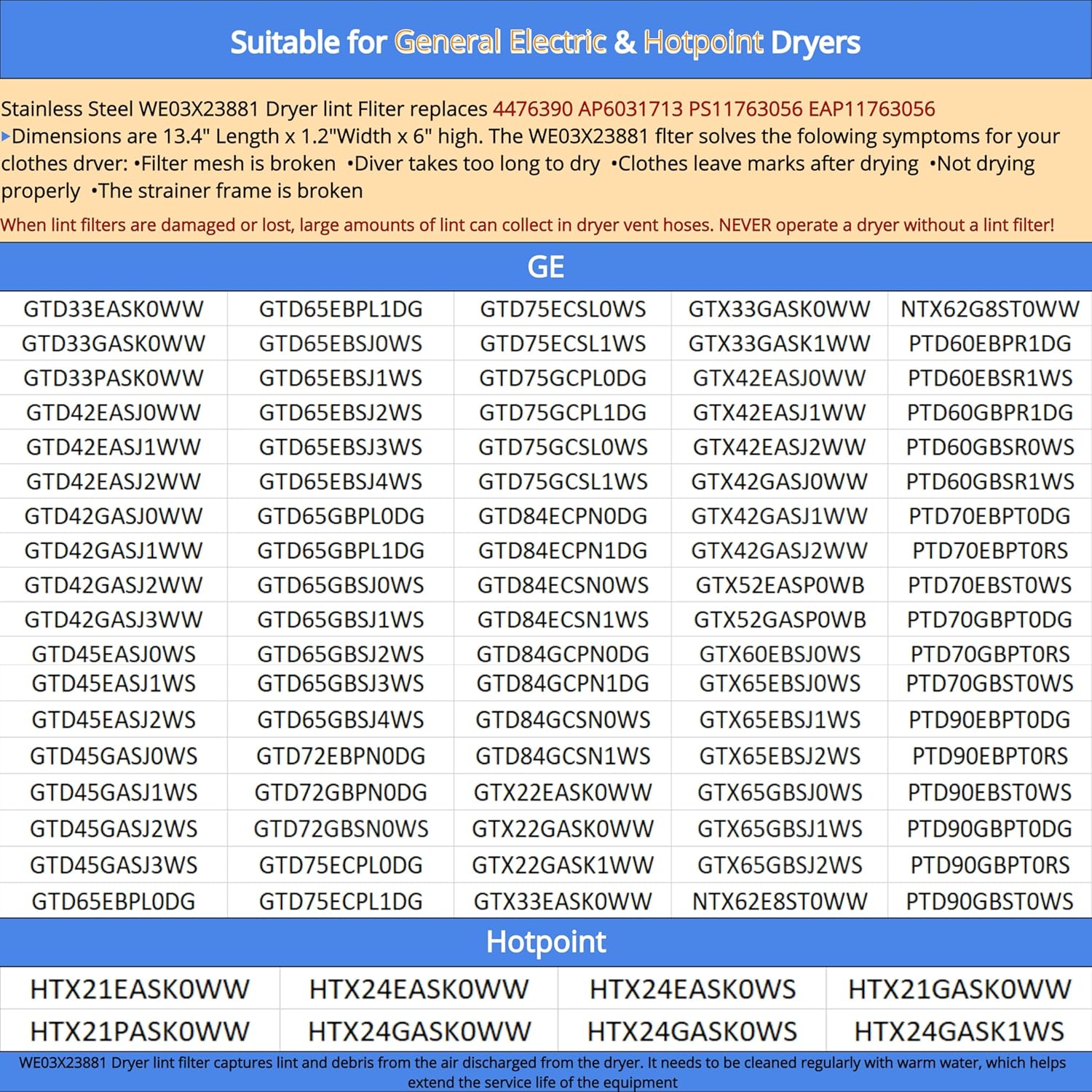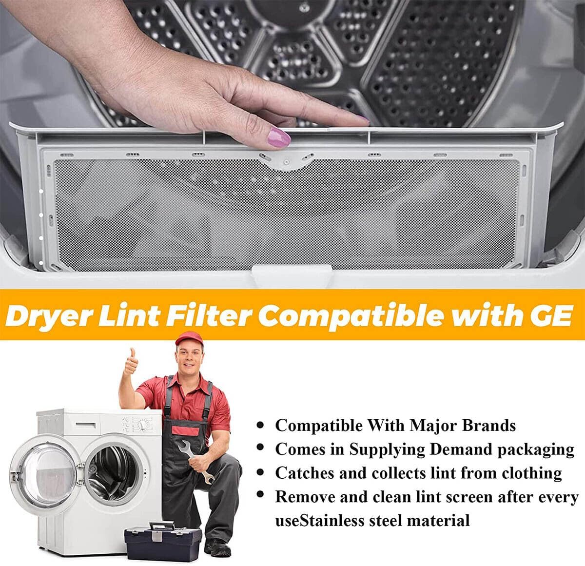 Lint Filter Replacement For General Electric (GE) & HotPoint Dryers GTD33EASK0WW GTD33GASK0WW GTD33PASK0WW GTD42EASJ0WW GTD42EASJ1WW GTD42GASJ0WW GTD42GASJ1WW GTD42GASJ2WW GTD45EASJ1WS GTD45EASJ2WS