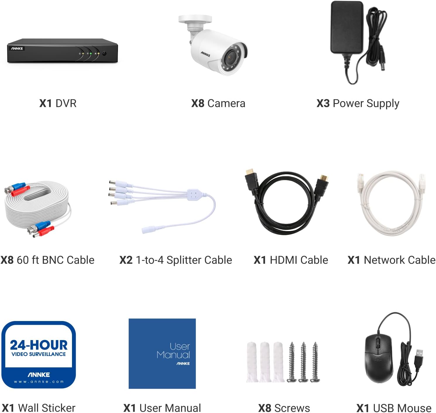 ANNKE Security Camera System, 8 Channel 3K Lite DVR and (8) 1080P Outdoor IP66 Weatherproof Cameras, AI Human/Vehicle Detection, Easy Remote Access, 100ft Night Vision(NO Hard Drive Included)