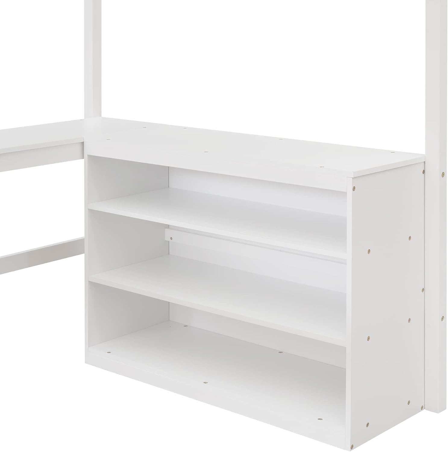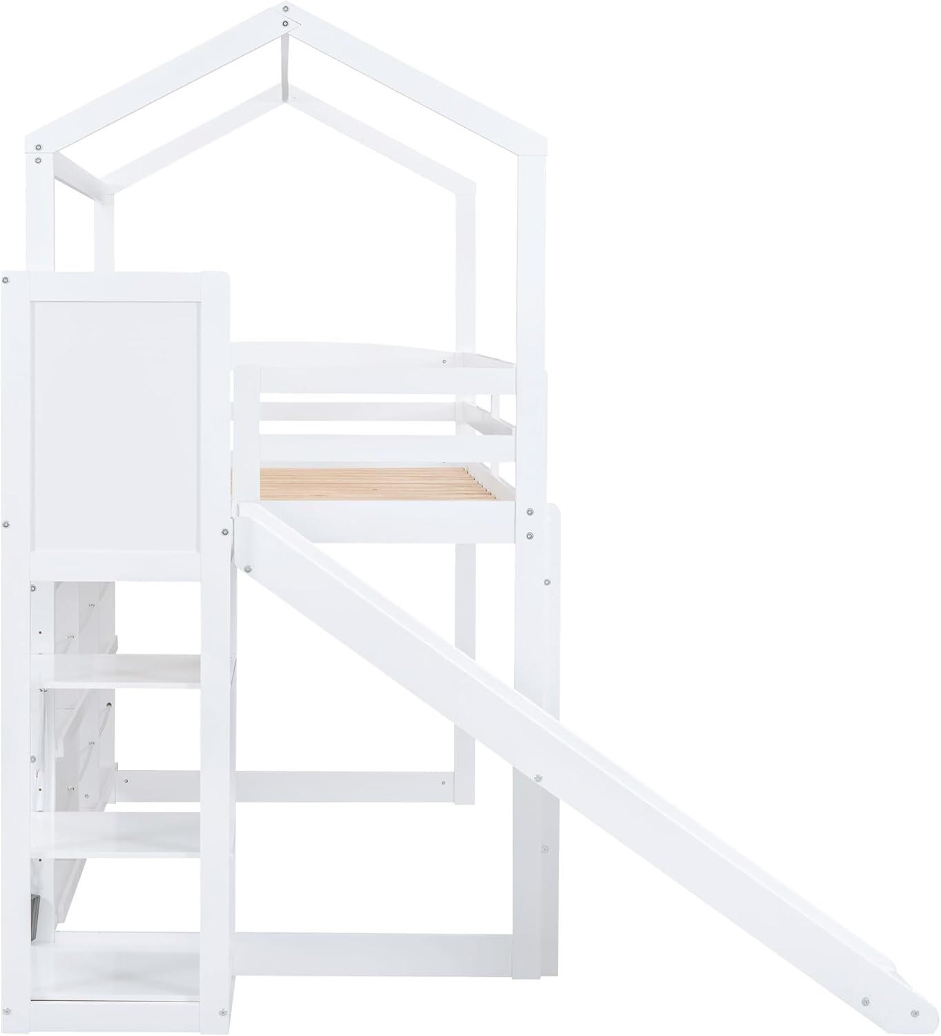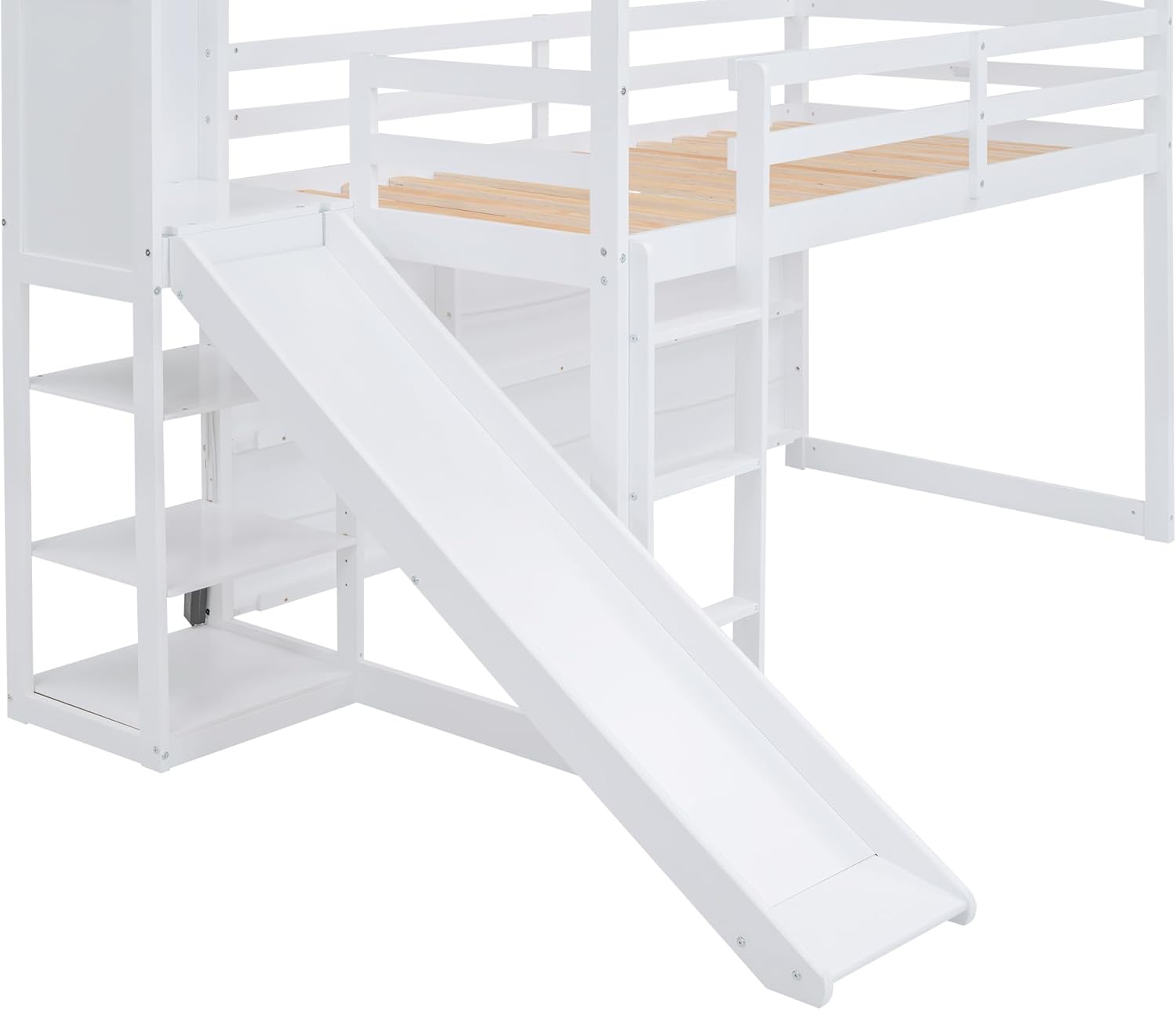 Twin Size Slide, Storage Shelves and Light, Climbing Ramp,Solid Loft Kids,Wood Play House Bed for Girls/Boys/Toddlers,White, 80.7" Hx96.1 Lx70.7 W