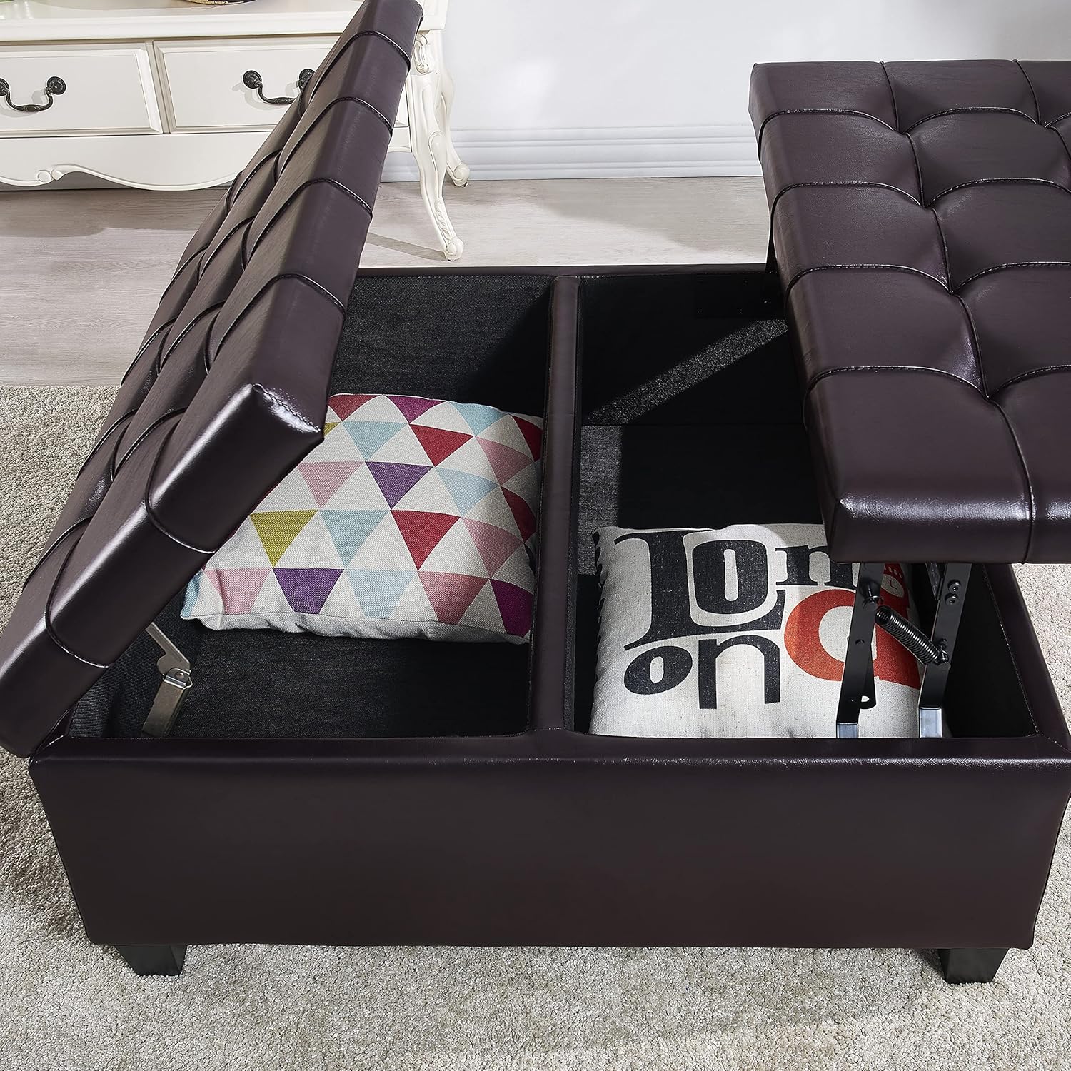 Large Square Faux Leather Storage Ottoman | Coffee table for Living Room & Bedroom (Dark Brown)