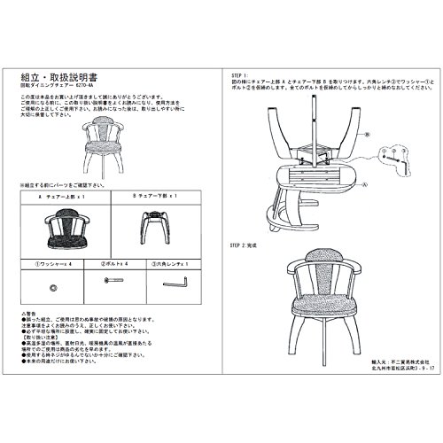 Fuji Boeki 81236 Dining Chair, Width 20.7 x Depth 19.7 x Height 27.6 inches (52.5 x 50 x 70 cm), Brown, Synthetic Leather, Natural Wood, 360