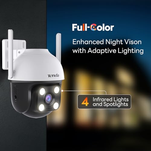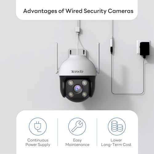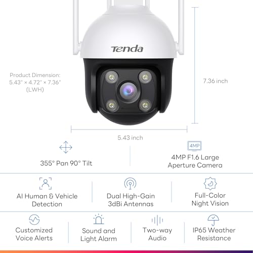 Tenda Security Cameras Outdoor, Plug-in WiFi Camera - 4MP, 360° Pan/Tilt, Color Night Vision, Patrol Mode, AI Human/Vehicle Detection, 2-Way Audio, IP65, Cameras for Home Security Outside(CH7)