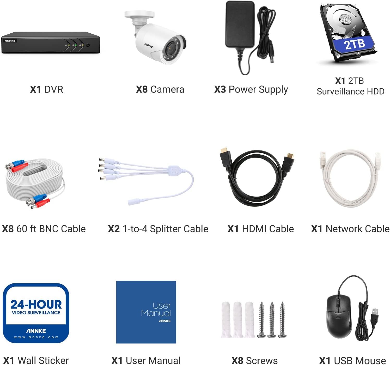 ANNKE CCTV Security Camera Systems, 8 Channel 1080P H.265+ 3K Lite DVR and 8×1080P IP66 Weatherproof Bullet Cams, 2TB Hard Drive, Smart Playback, Email Alert with Snapshots, AI Human/Vehicle Detection