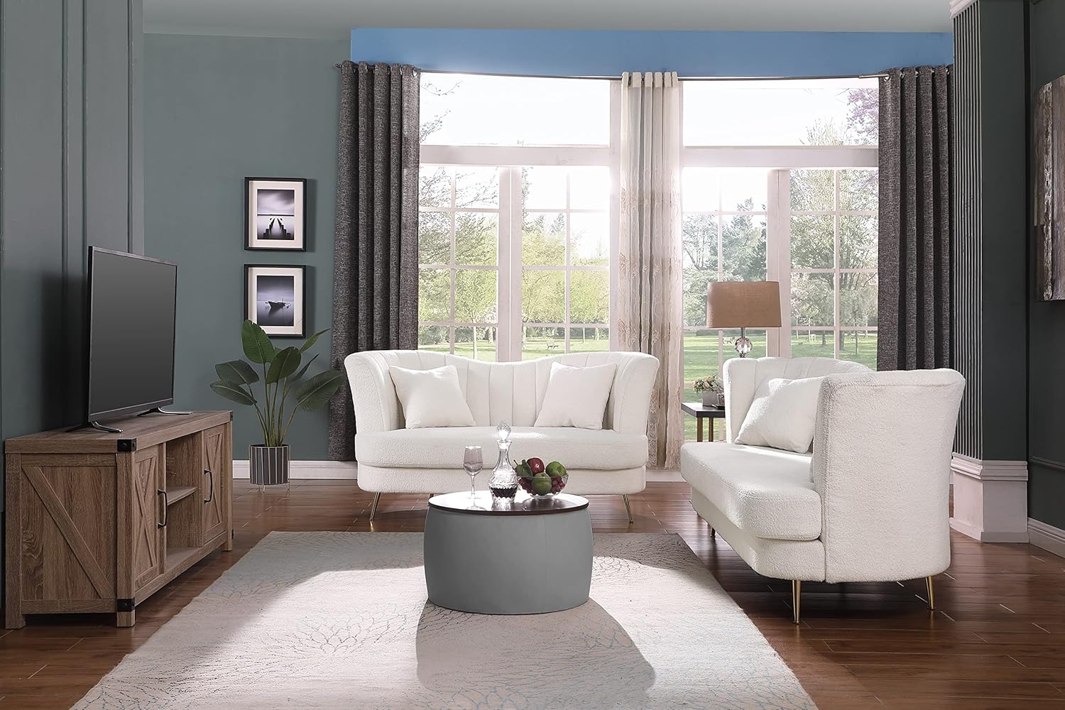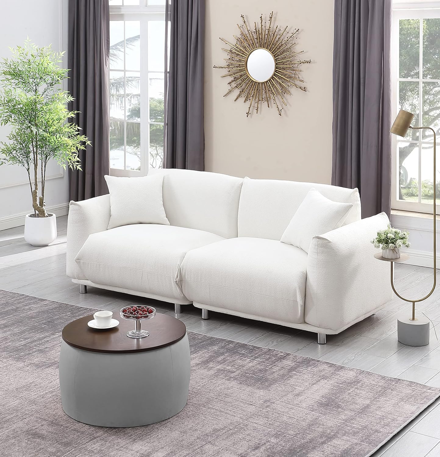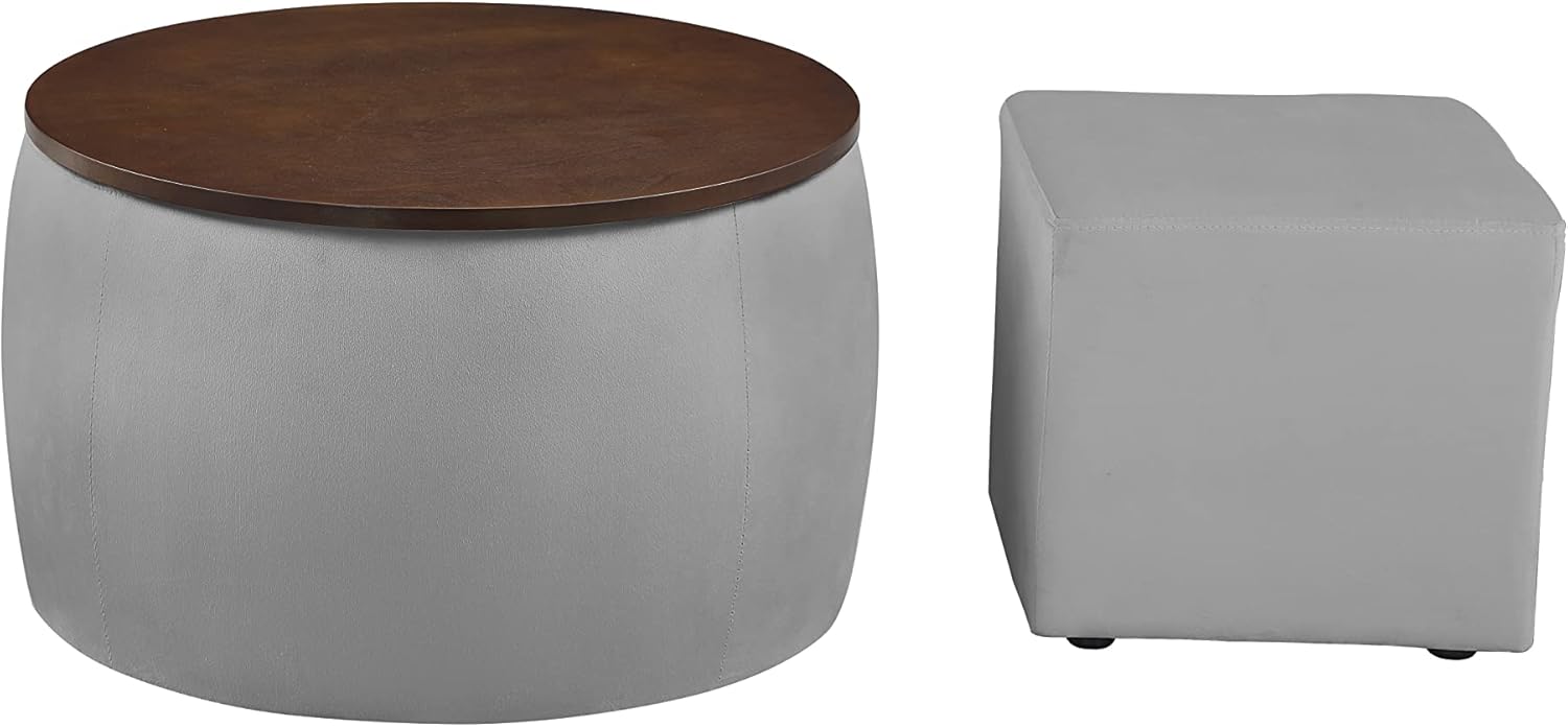 Round Ottoman Set with Storage, 2 in 1 combination, Round Coffee Table, Square Foot Rest Footstool for Living Room Bedroom Entryway Office (Gray)