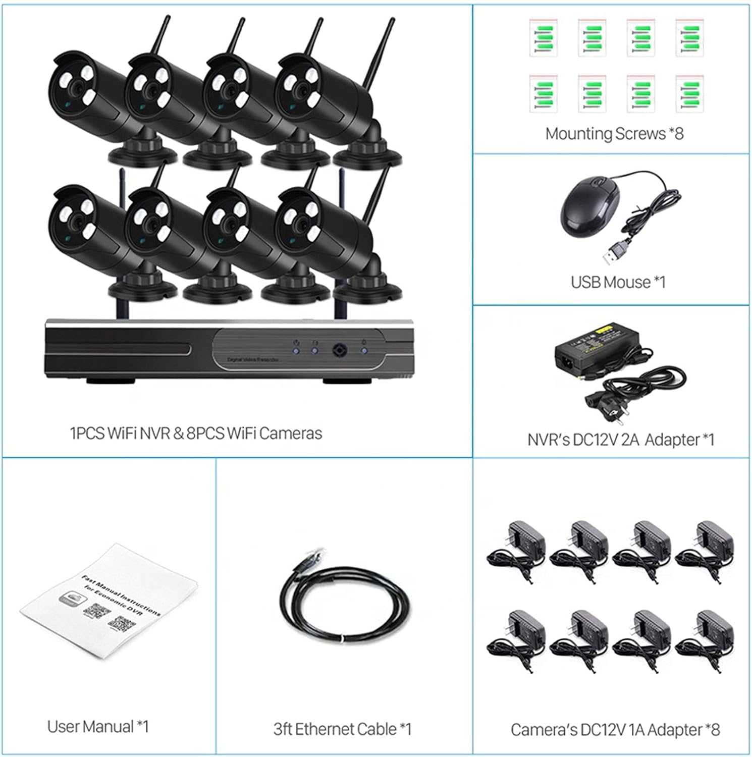 2MP Security Camera System Outdoor 8 Channel DVR Surveillance Kit Night Vision Cam,IP66 Weatherproof Home CCTV Cameras,Instant Email Alert with Images