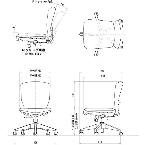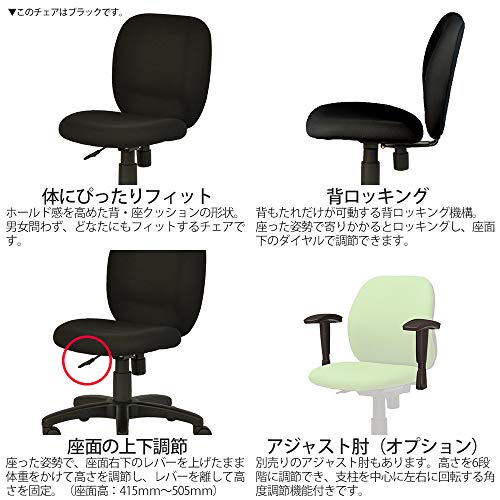 Plus NEXIS C02 KC-NX616SL BK 601063 Office Chair, Desk Chair, Black, Depth 27.8 x Width 25.8 x Height 32.3 inches (70.5 x 65.8 x 82 cm)