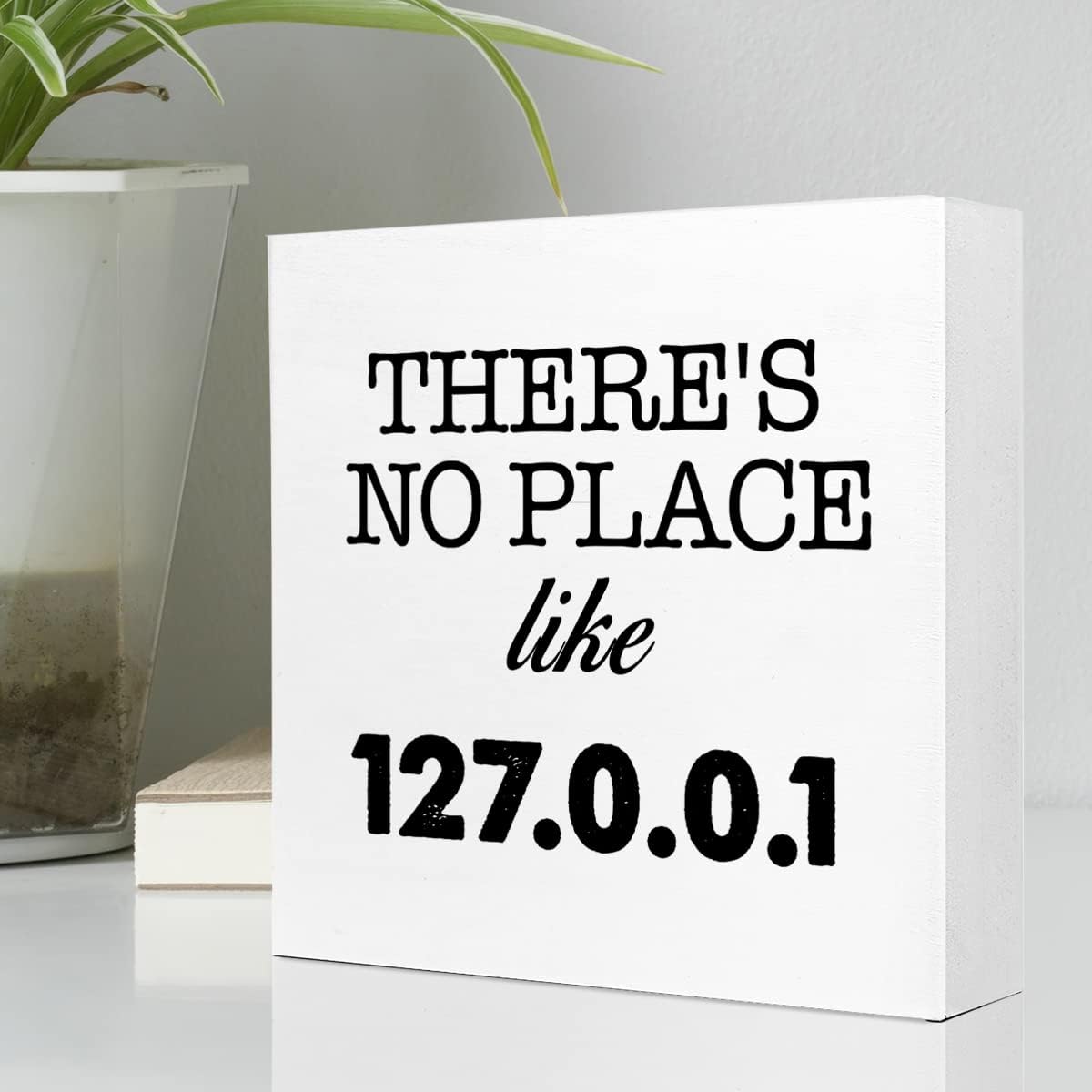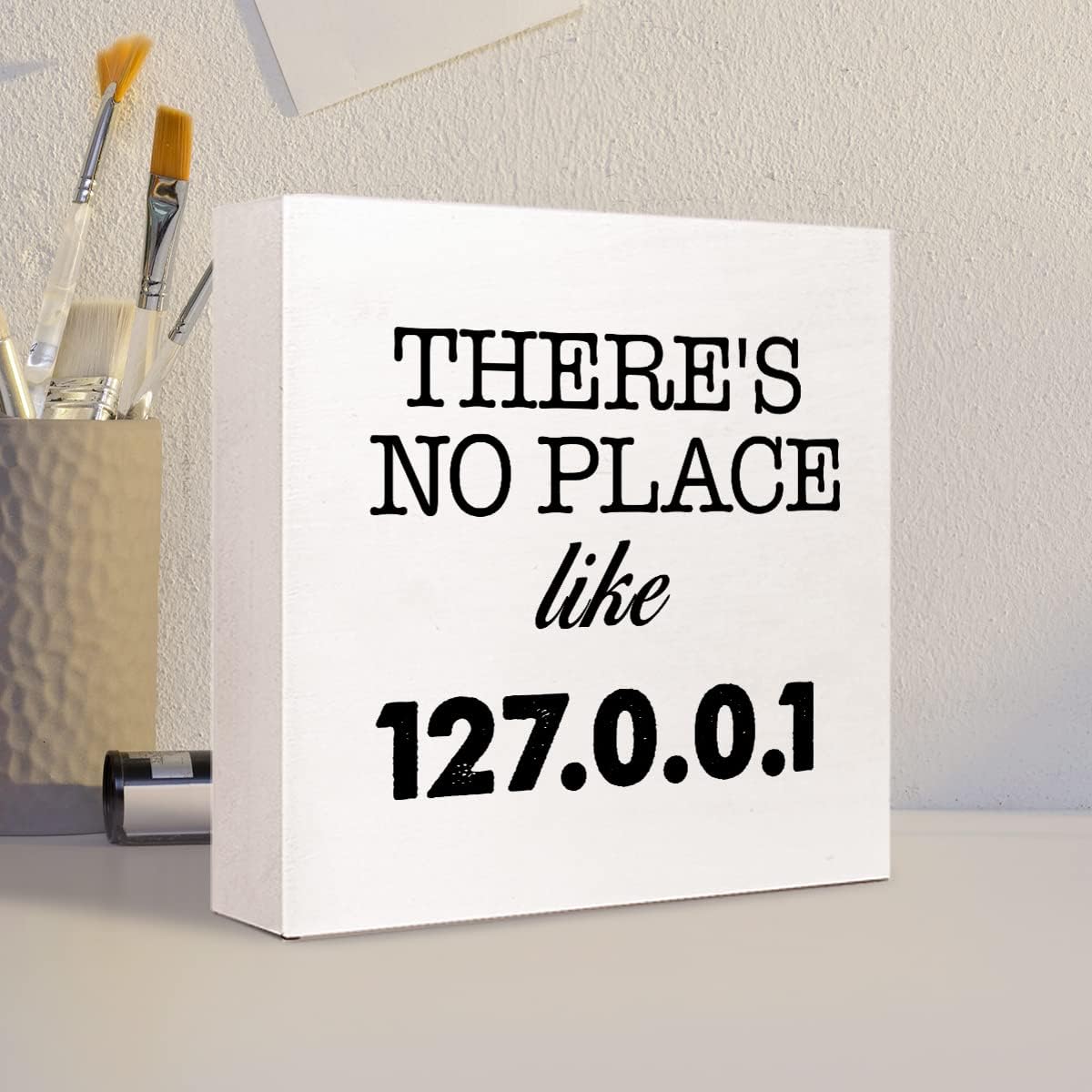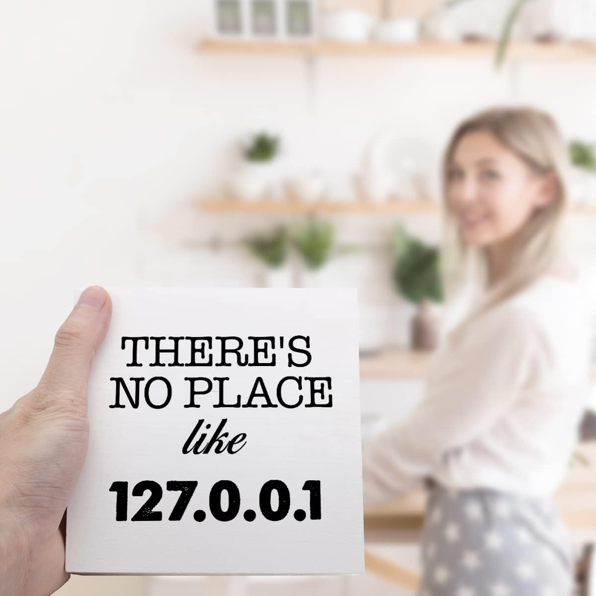 There's No Place Like Wooden Sign Desk Decor,Funny Office Wood Block Sign Desk Decorations for Home Office Desk Shelf Table Decor