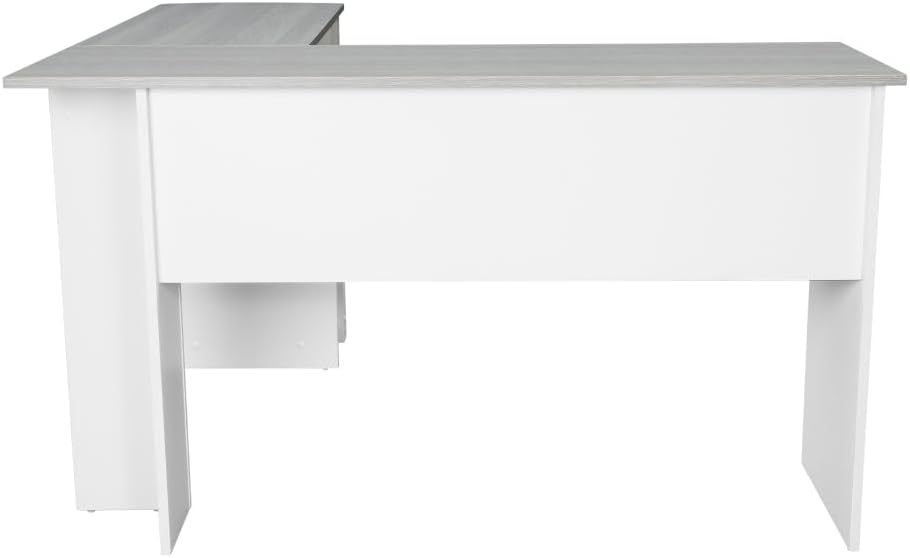 Finley L-Shaped Modern Wood Writing Desk in White/Driftwood