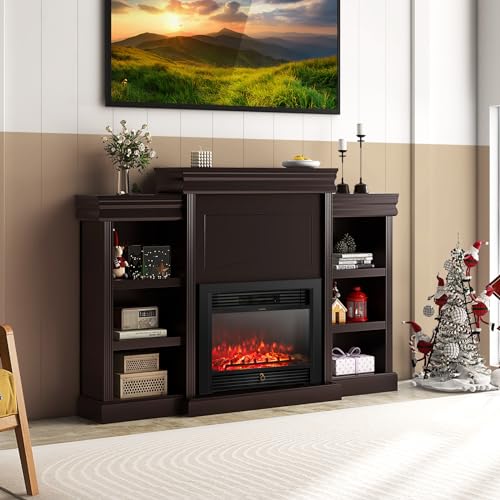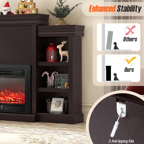 Giantex Electric Fireplace TV Stand - 1500W Electric Fireplace Inserts with 3 Flame Colors, Media Console, TV Cabinet with Fireplace, 6 Shelves, Entertainment Center for Bedroom, Living Room (Brown)