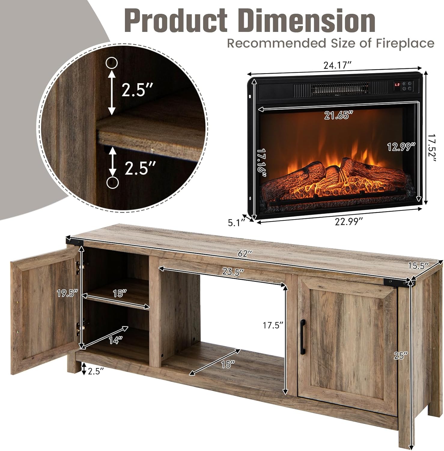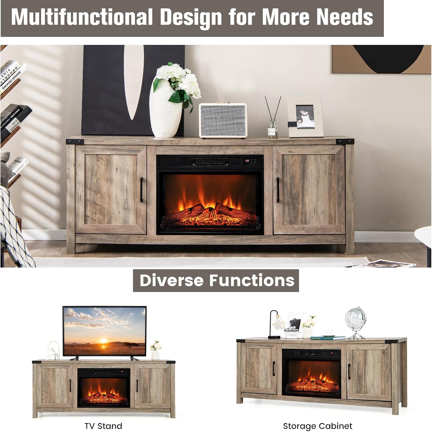 COSTWAY Electric Fireplace TV Stand for TVs up to 70 Inches, Farmhouse Media Entertainment Center Table with Storage Cabinets, Electric Fireplace TV Console with Remote Control for Living Room Bedroom