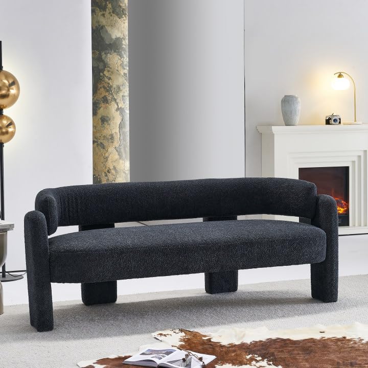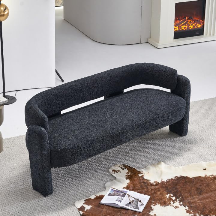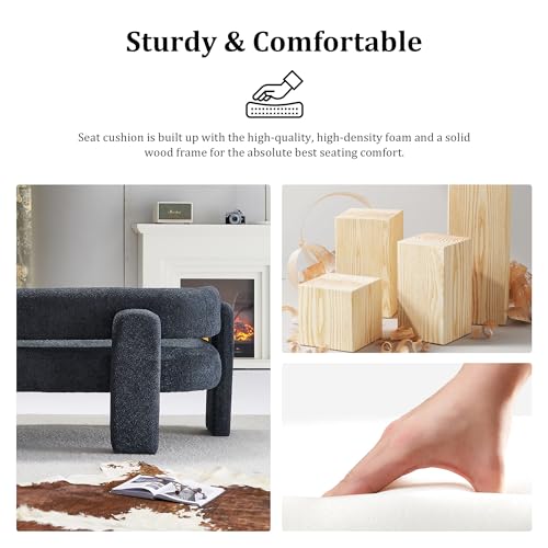 Yoglad Deep Upholstered Armchair- Modern Living Room Accent Chair with Arms,Single Couches Comfy Reading Lounge for Small Bedroom(Dark Grey Teddy Boucle)