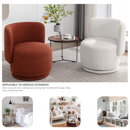 Swivel Barrel Chairs Set of 2,Boucle Accent Chair for Living Room,Upholstered Swivel Accent Chair Reading Chair for Small Space,Bedroom,Office(Rust/Dark Orange)