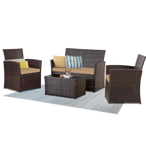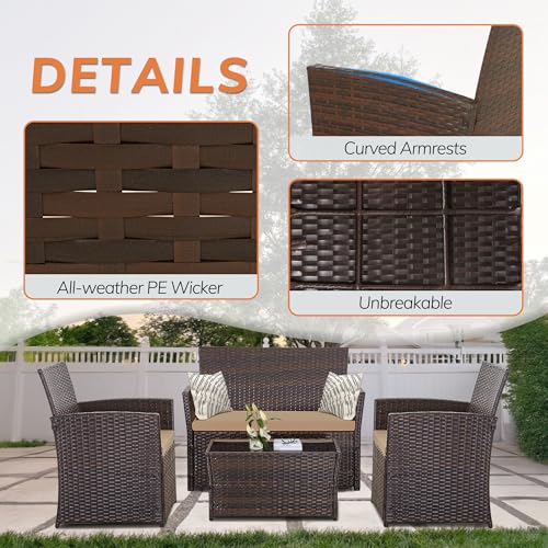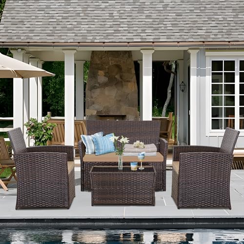 7 Pieces Patio Furniture Set,Wicker Outdoor Conversation Set,Rattan Sectional Sofa Set w/Washable Cushions & Glass Coffee Table for Porch Poolside Backyard-Gray/Gray