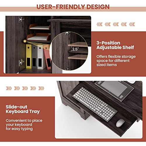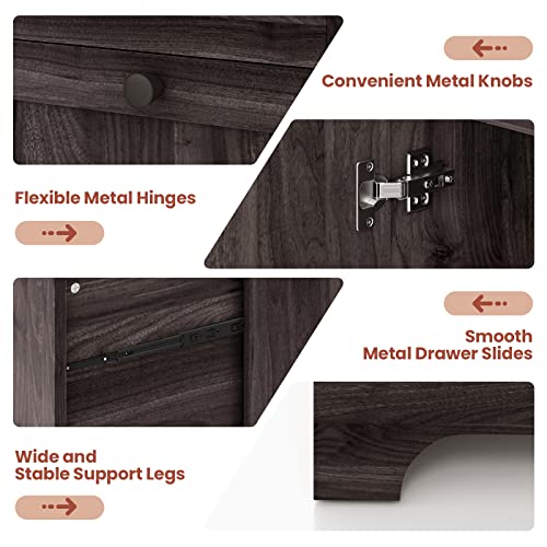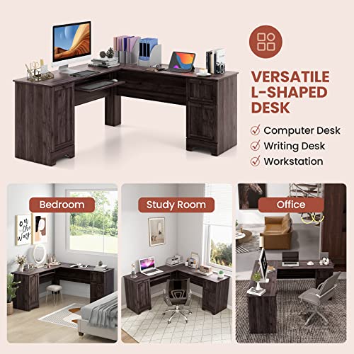 Tangkula L-Shaped Office Desk with Storage Drawers & Keyboard Tray, Home Office Corner Computer Desk with Cabinet & Inner Adjustable Shelf, Space-Saving Study Writing Desk, Computer Workstation