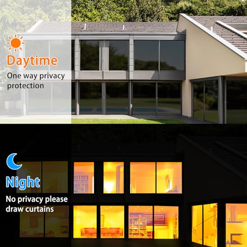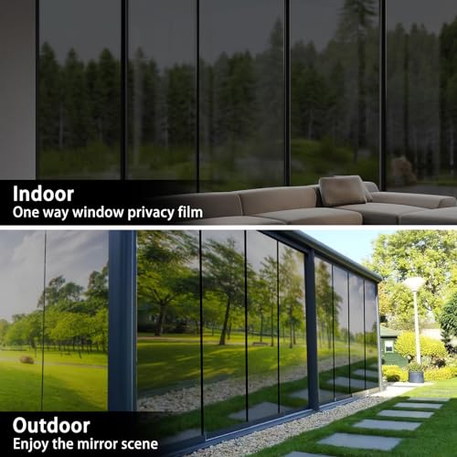 Window Privacy Film See Out Not in, One Way Window Tinting Film for Home Sun UV Blocking Heat Insulation Mirror Window Film Self-Adhesive, Diamond Black Silver, 29.5 inch x 6.5 feet