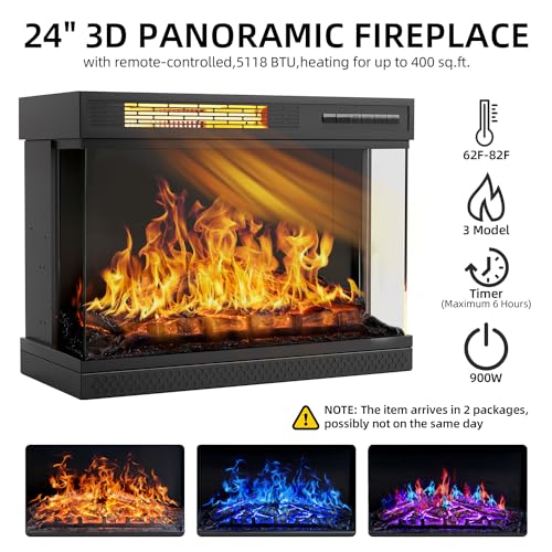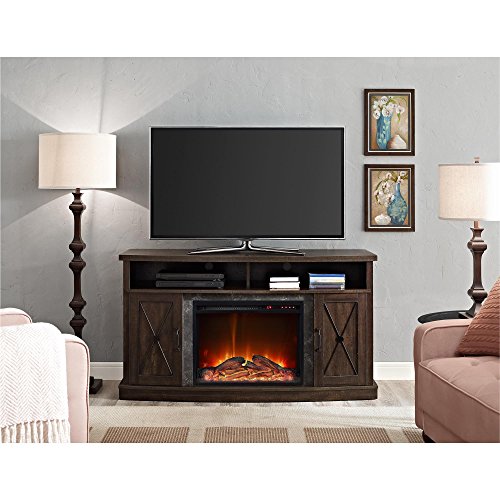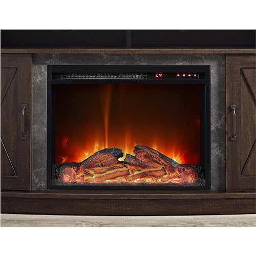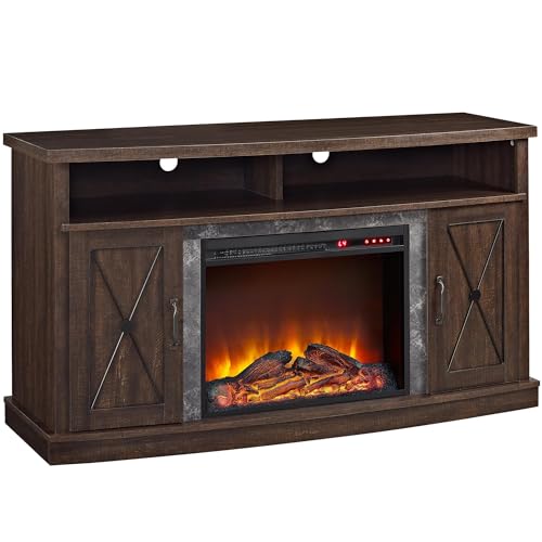 Ameriwood Home Barrow Creek Fireplace TV Stand for TVs up to 60 Inch, Replaceable Electric Fireplace Insert Heater, Remote Control, Timer, Realistic Log and Flame Effect, Espresso