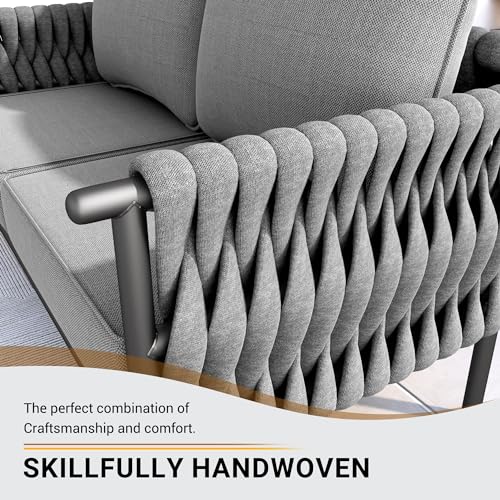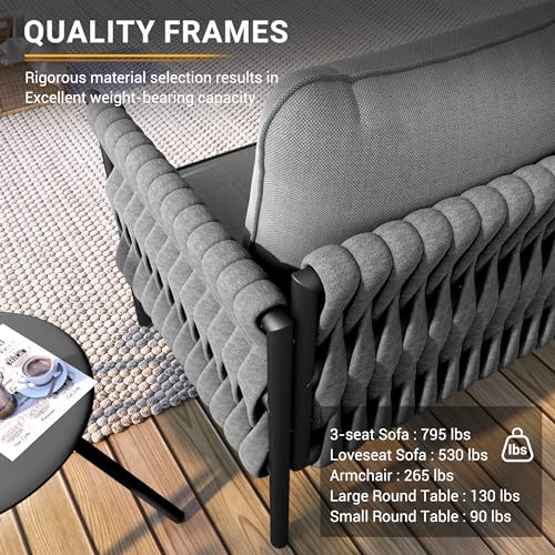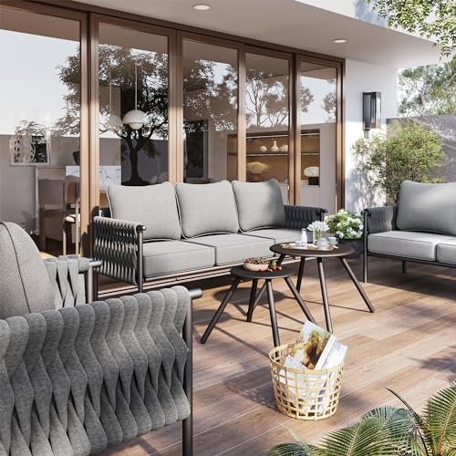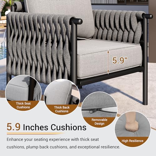 Metal Outdoor Patio Furniture Set, 6 Pieces Modern Outdoor Conversation Furniture Sets w/2 Coffee Table, Outside Furniture with High-Resiliency Sponge Cushions for Porch, Balcony, Backyard