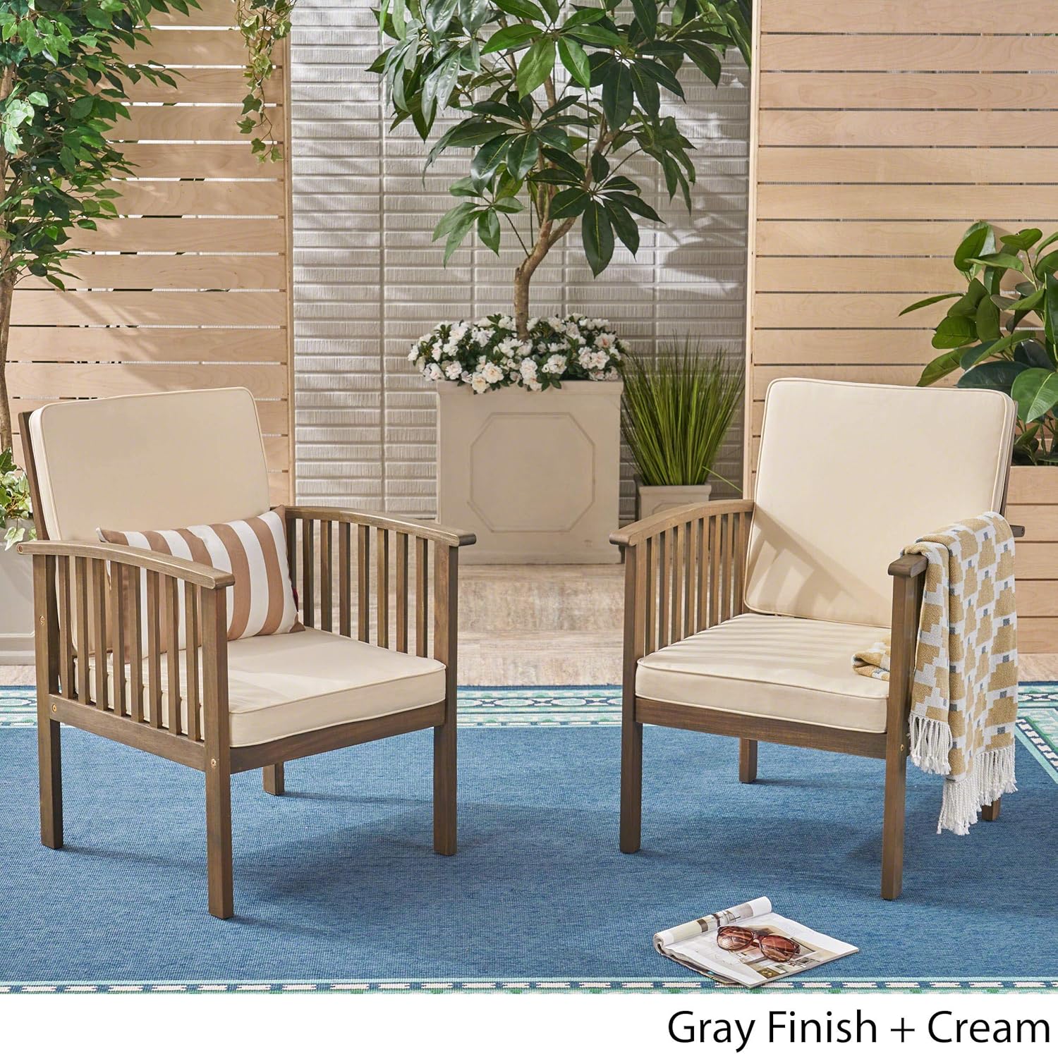 Christopher Knight Home 306225 Ray Outdoor Acacia Wood Club Chairs, (Set of 2), Gray Finish/Cream