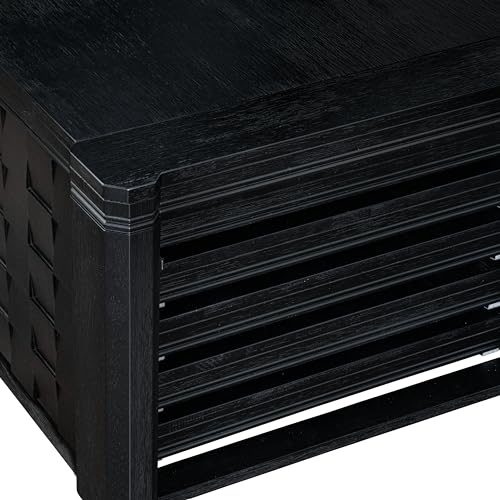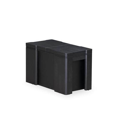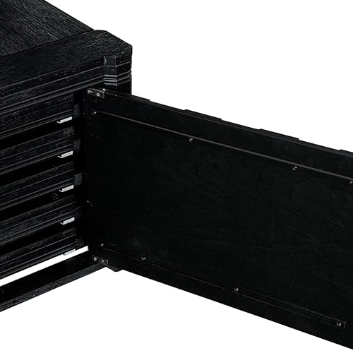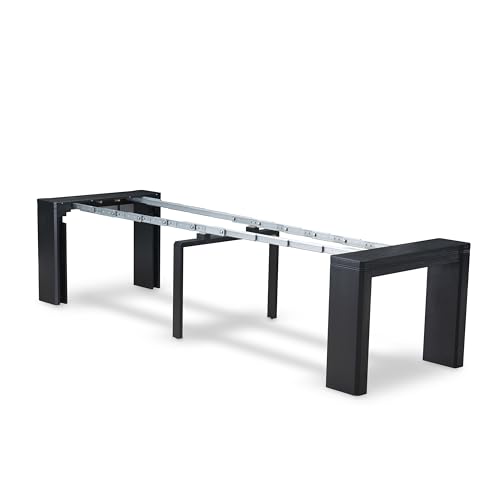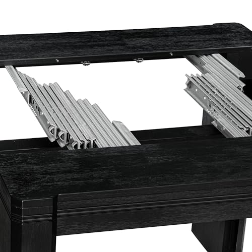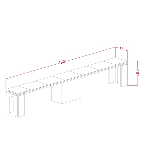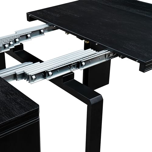 Extendable 6-Piece Set a Kitchen Coffee Table and 2 Wooden Benches and 2 Beige Red Faux Leather Dining Chairs, 39x120 Inch, Wire Brushed Black