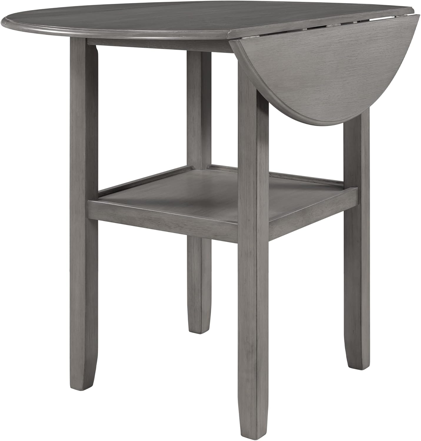 Danxee Farmhouse Rustic Round Indoor Wood Counter Table Wood Dining Table with Drop Leaf and One Shelf, 42 Inch for Kitchen, Dining Room (Gray)
