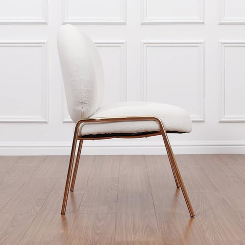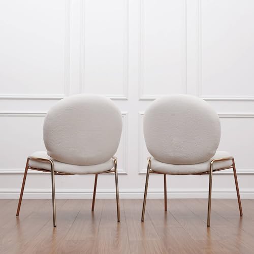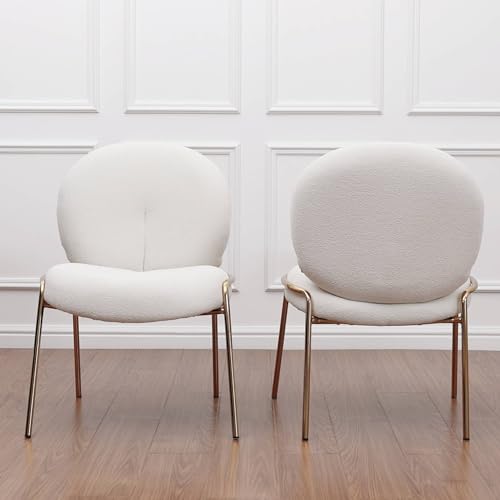 MAVA Modern Boucle Chair with Gold Metal Legs, White Upholstered Dining Chairs, Comfy Sherpa Barrel Accent Furniture, Funky Boucle Teddy Boucle Dining Chair Assembled