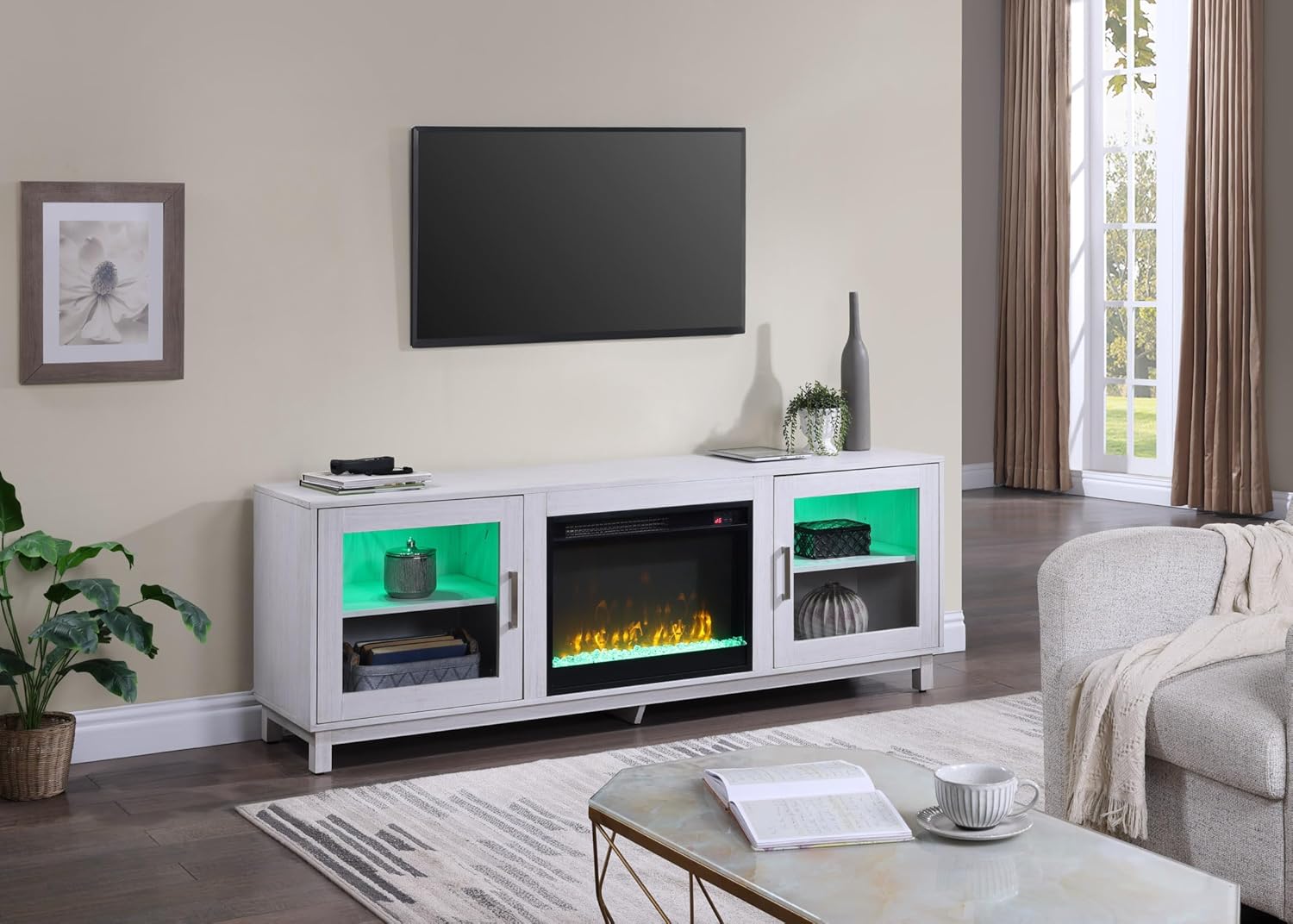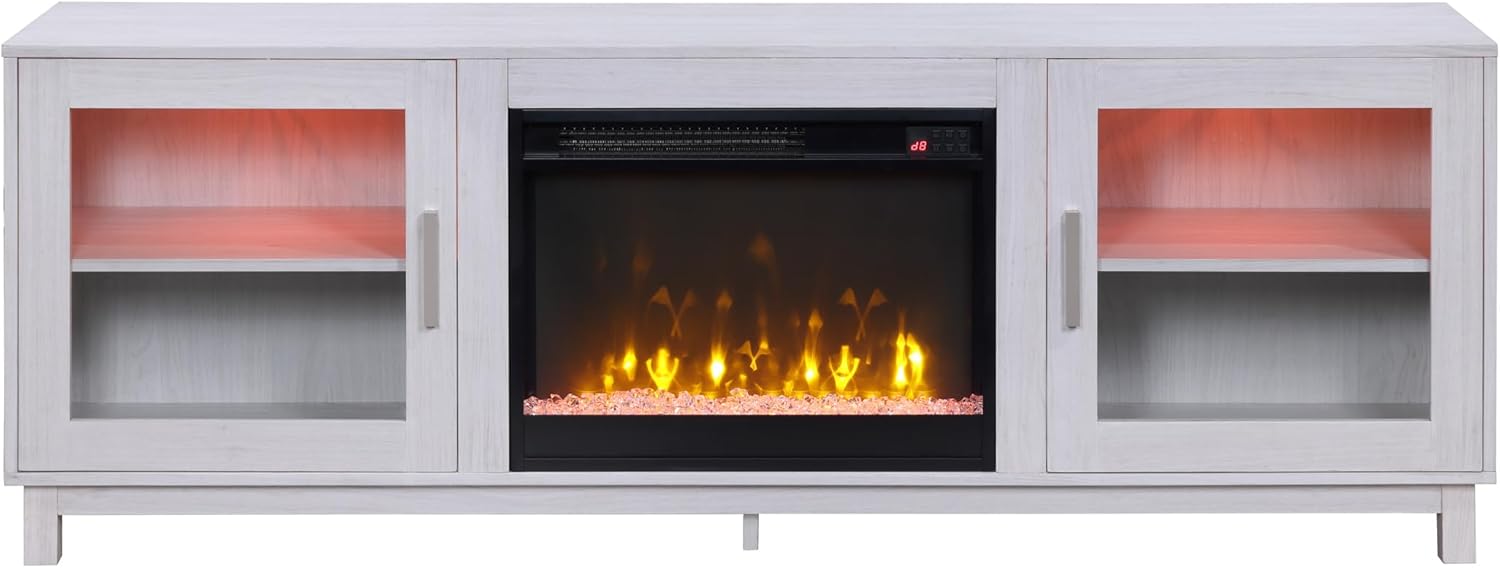 Summit 70" White Walnut Finish TV Stand Console with Fireplace