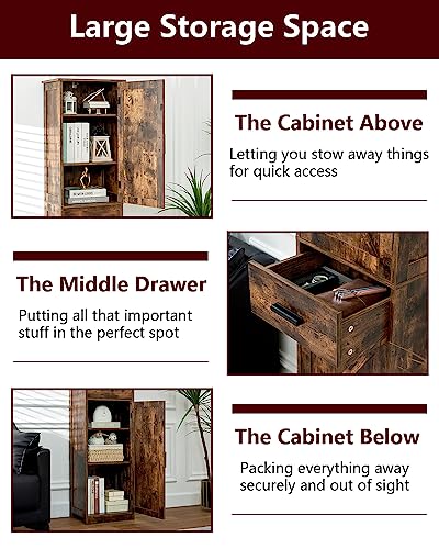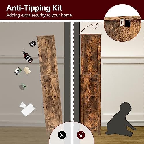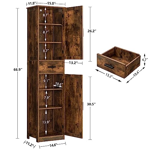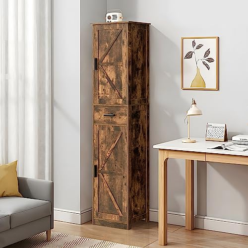 WEENFON Tall Storage Cabinet, Bathroom Cabinet with 6 Shelves & Drawer, Narrow Storage Cabinet with Ajustable Shelves, Tall Cabinet for Living Room, Home Office, Rustic Brown