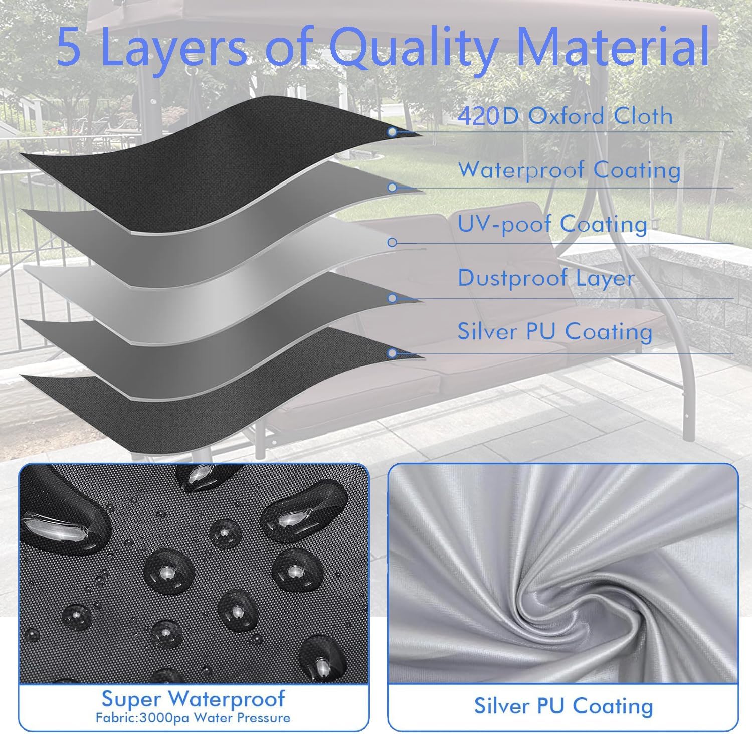 FLYMEI Outdoor Swing Cover 2 Seater Waterproof Patio Swing Cover Porch Swing Cover 2 Triple Seater Swing Canopy Cover All Weather Protection, 65'' (L) x 50''(W) x 66''(H)