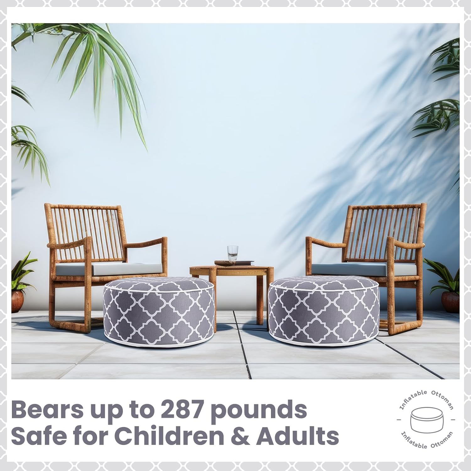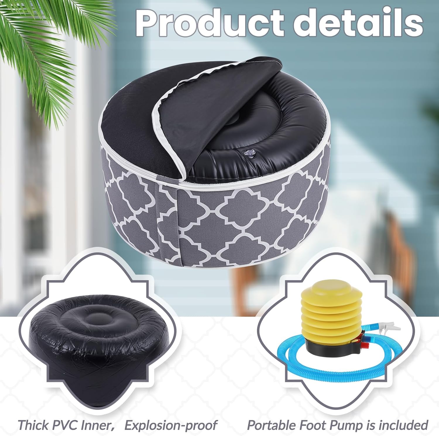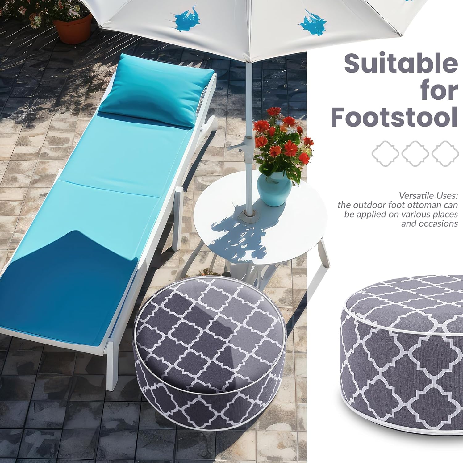 2 Pack Outdoor/Indoor Inflatable Ottoman, All Weather Round Pouf with Handle D21 x H9, Water Repellent Portable Footstool Pouf for Patio Garden Camping or Home