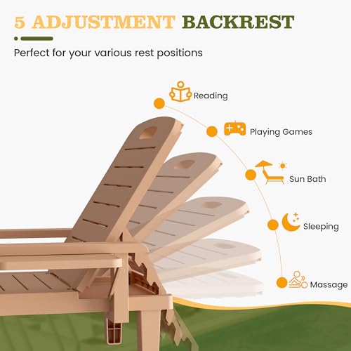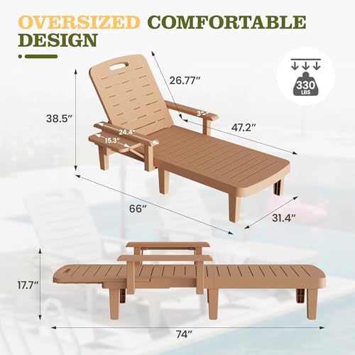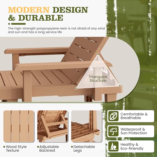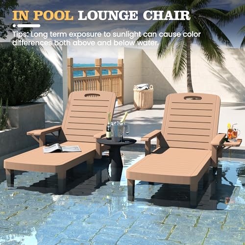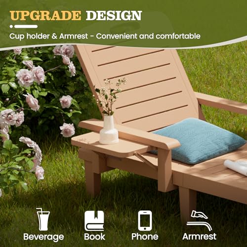 Oversized Outdoor Chaise Lounge Chairs Set of 2, Patio Lounge Chair with Adjustable Backrest, Pool Chaise Lounge with Cup Holder, Resin Chair for Poolside, Beach, Garden and Yard - Wood Grain