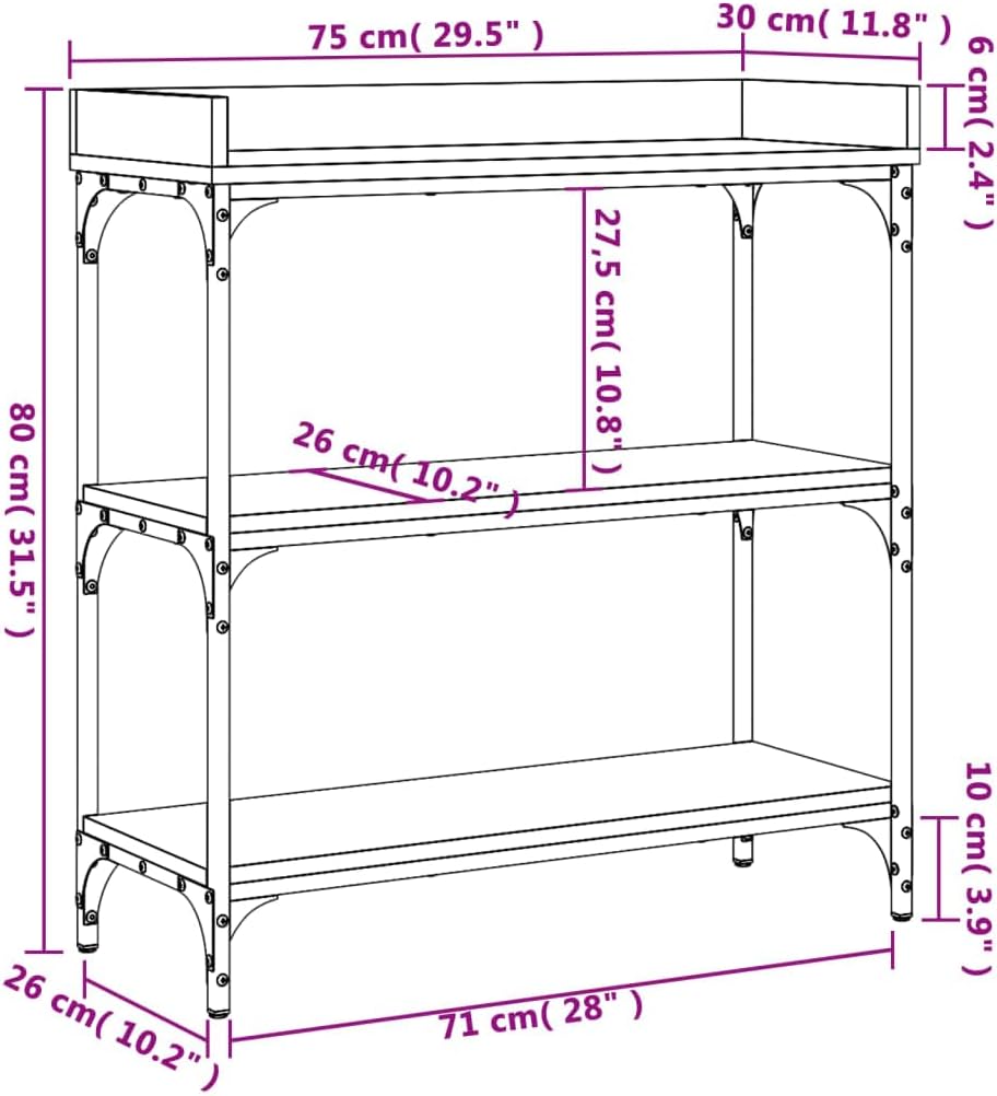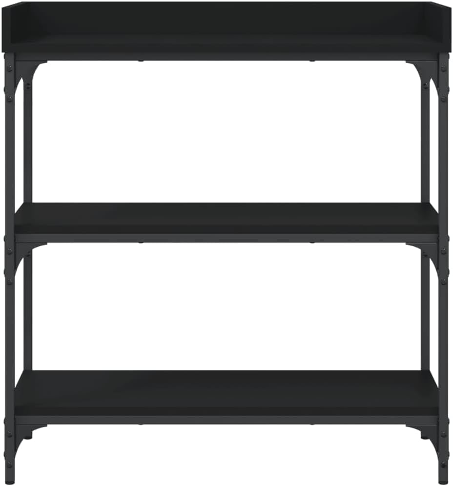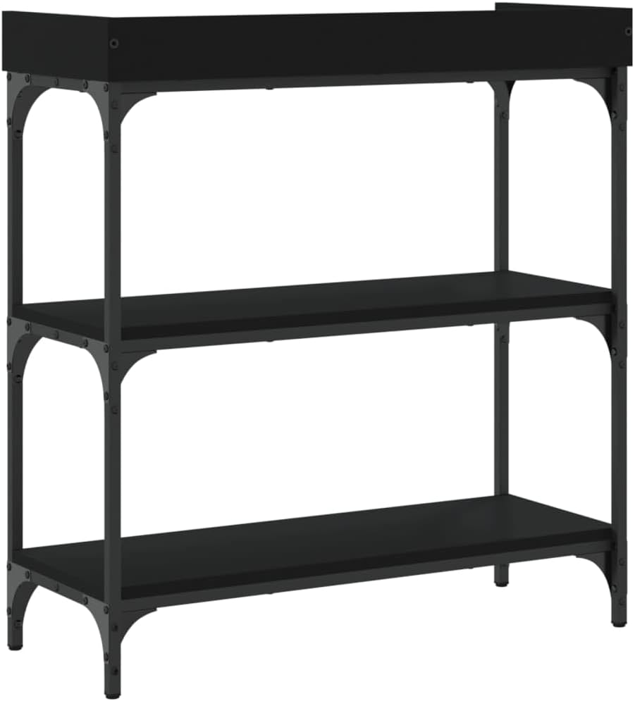 vidaXL Black Contemporary Console Table with Shelves, Engineered Wood and Metal Frame, Adjustable Feet for Stability, Ideal for Entryway, Living Room or Hallway.