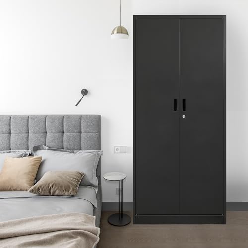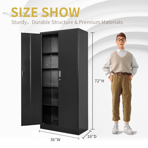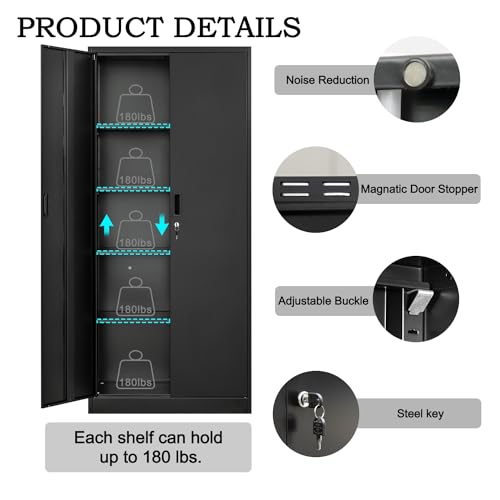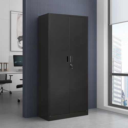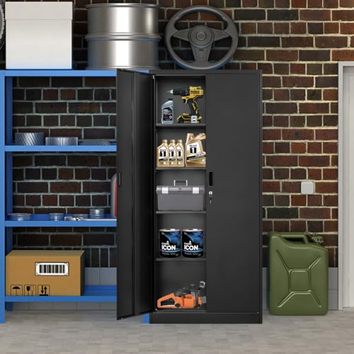 Metal Storage Cabinet, 72" Lockable Garage Tool Cabinet with Doors and Shelves, Tall Steel Cabinet for Garage, Locking Storage Cabinet for Home, Office, Garage, Gym, School(White)