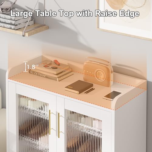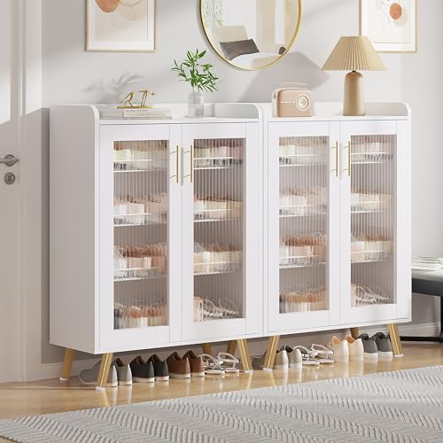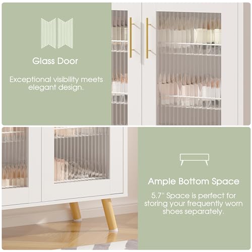 VECELO Shoe Cabinet Storage for Entryway 4-Tier Free Standing Organizer with Doors and Shelves, Large Capacity for Hallway, 23.62 "L x 11.81 "W x 37.4 "H, Pearl White