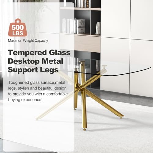 63" Glass Dining Table Set for 6, 7 Piece Modern Kitchen Table and Leather Chair Set for 6, Largerectangle Tempered Glass Dining Room Table Set for Home Kitchen Banquet Hall Room