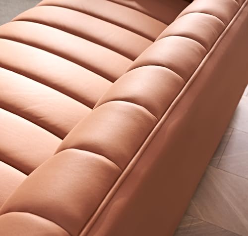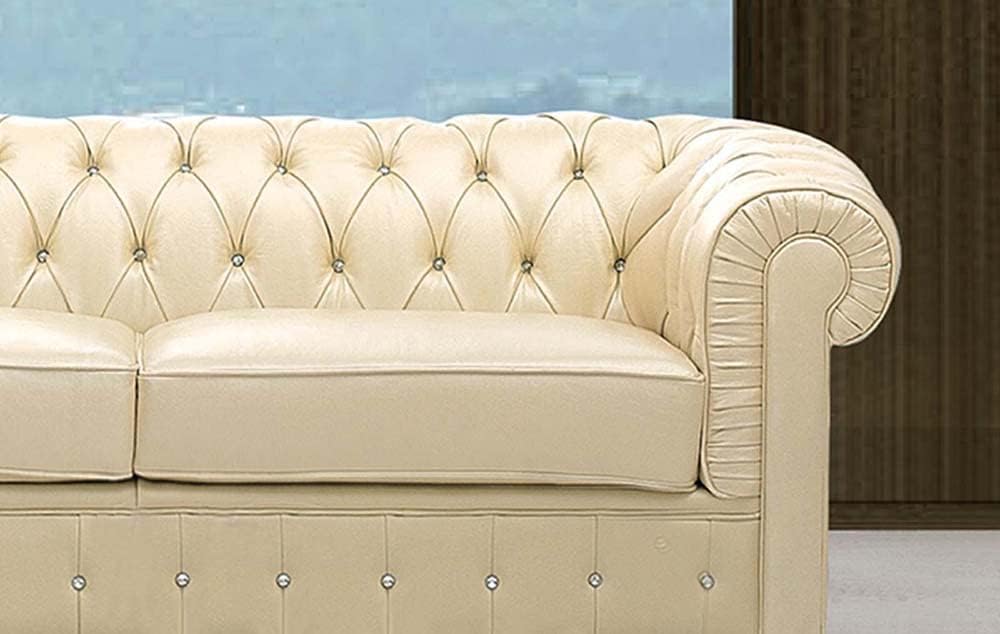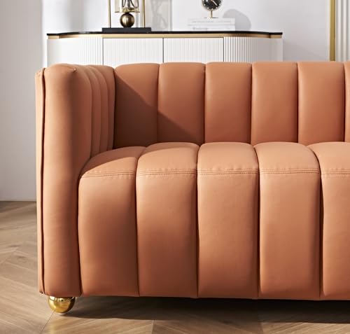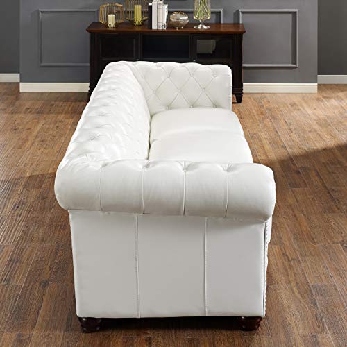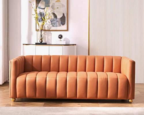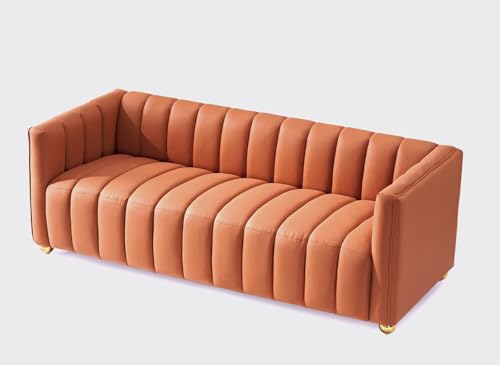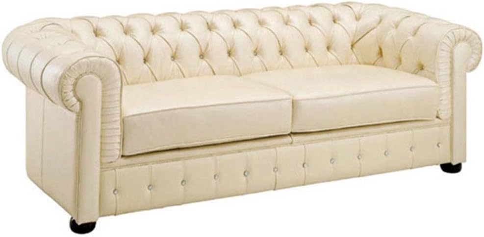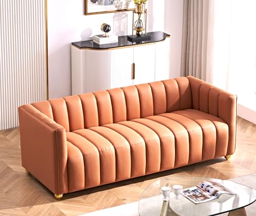 US Pride Furniture 82.7" Art Deco Modern Fabric Upholstered Leather Look Couch with Tufted Low Back Design, Sophisticated 3 Seater Sofa for Living Rooms, Easy Assembly, Ivory