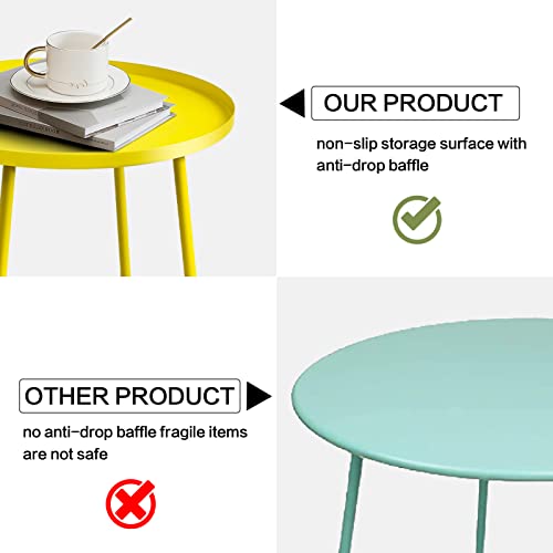 Babion Blue Outdoor Side Tables, Small Outdoor Table, Round Patio Side Table Steel, Small Accent End Table for Patio Yard Garden, Indoor & Outdoor