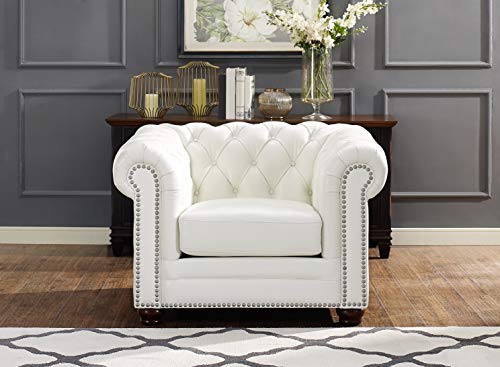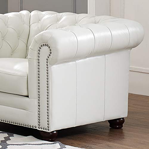 Hydeline Aliso 100% Leather Loveseat, Ivory