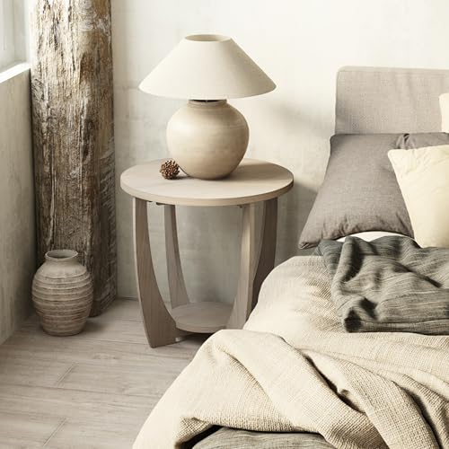 LONYKE Round Farmhouse End Table for Small Spaces, French Country Accent Side Table with Storage Shelf, Dinning or Living Room, Modern, Vintage Blue