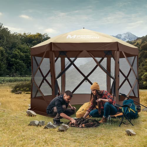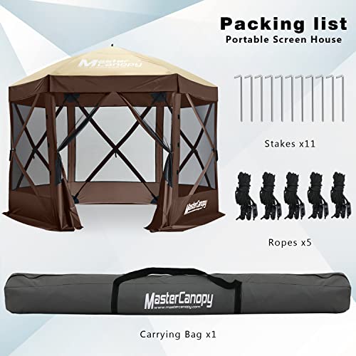 MASTERCANOPY 10x10 Portable Screen House Room Pop up Gazebo Outdoor Camping Tent with Carry Bag (10x10,Beige&Coffee)