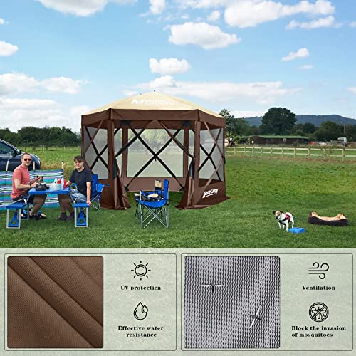 VEVOR Pop-Up Gazebo Screen Tent, 12 x 12 Ft 6-Sided Camping Gazebo Instant Canopy Sun Shelter with 6 Removable Privacy Wind Cloths, Mosquito Netting, 300D Oxford Cloth for Patio, Backyard, Lawn