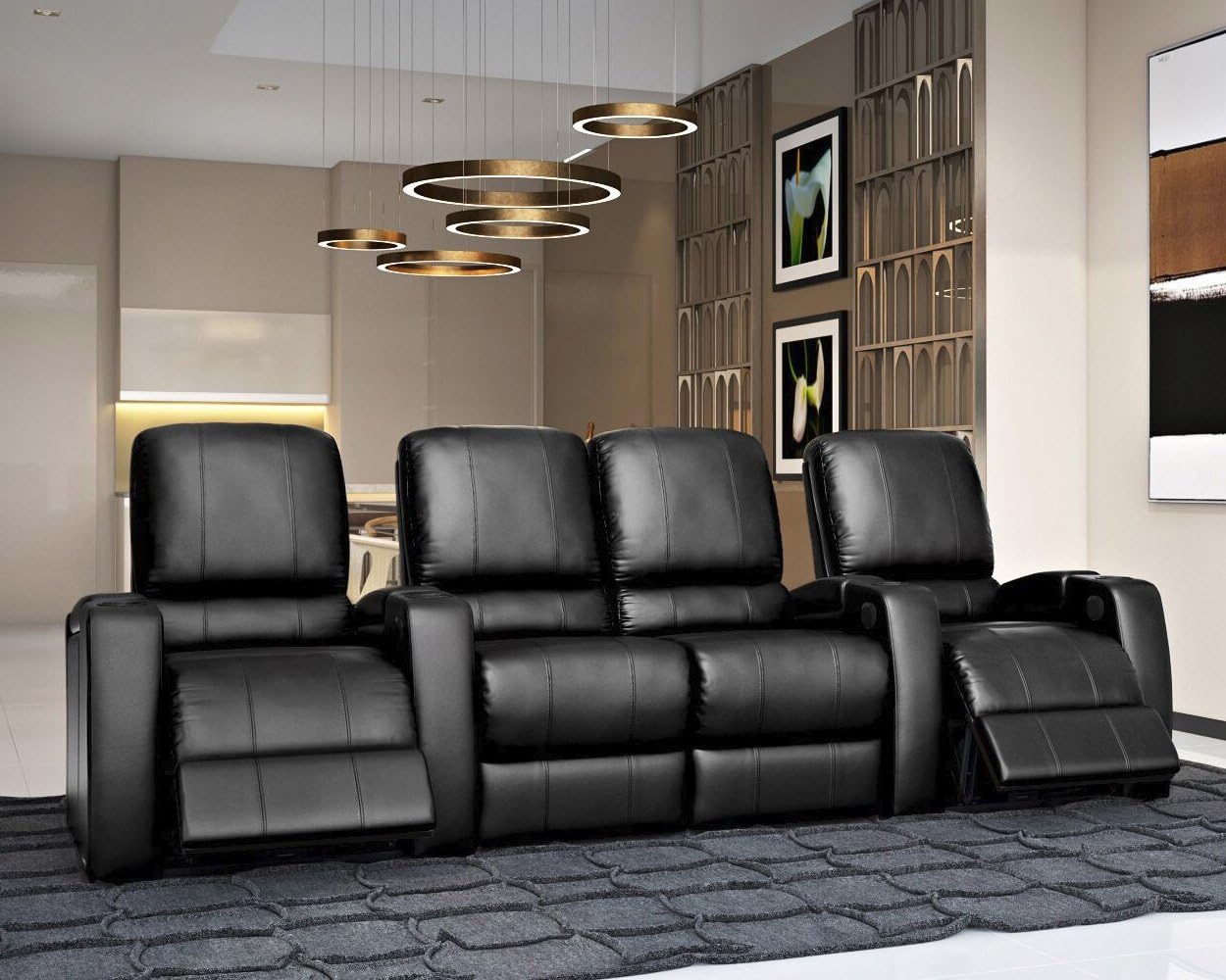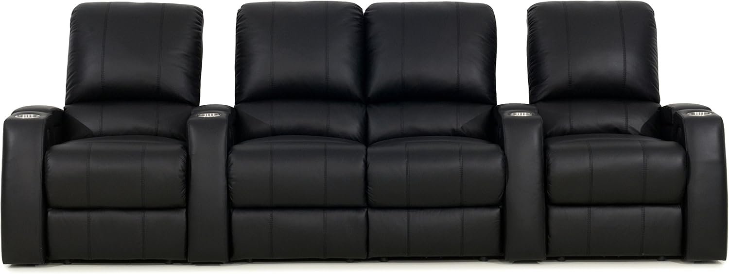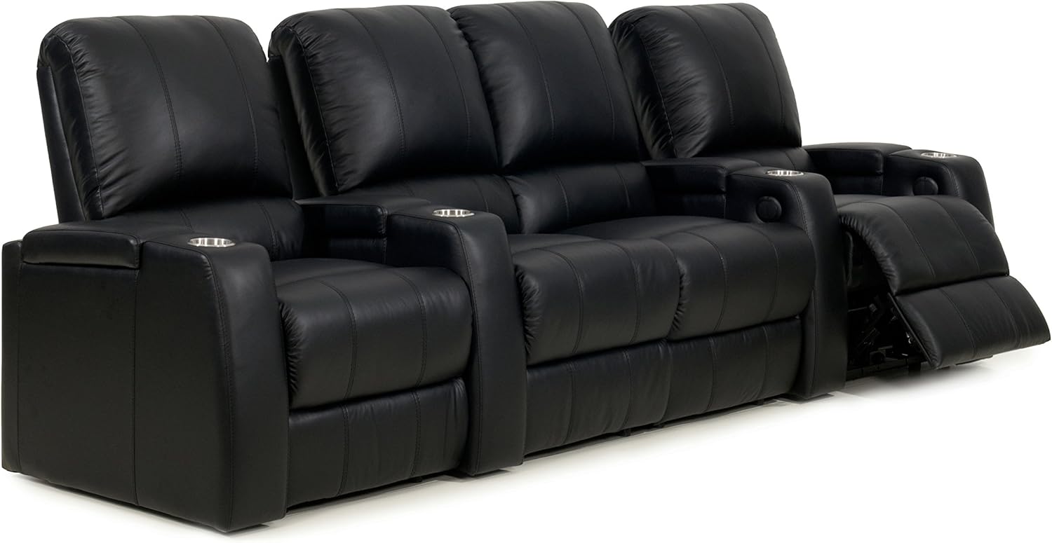 Octane Seating Storm XL850 Home Theater Sectional Sofa Black Leather - Power Recline - Straight Row 4 Chairs