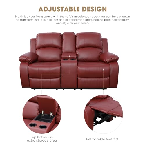 2 Pieces Faxu Leather Set, 3 Seater Manual Reclining Sofa & Loveseat with Storage Console & 4 Cup Holders and Footrest, Sectional Couch Home Theater Seating RV Furniture, Black