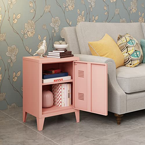 MIOCASA Nightstand Modern End Side Table Steel Bedside Storage Cabinet with Shelf Easy Assembly for Living Room Bedroom (White)